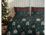 Pościel bawełniana świąteczna 160x200 piernikowe domki na zielonym, choinki i śnieżynki