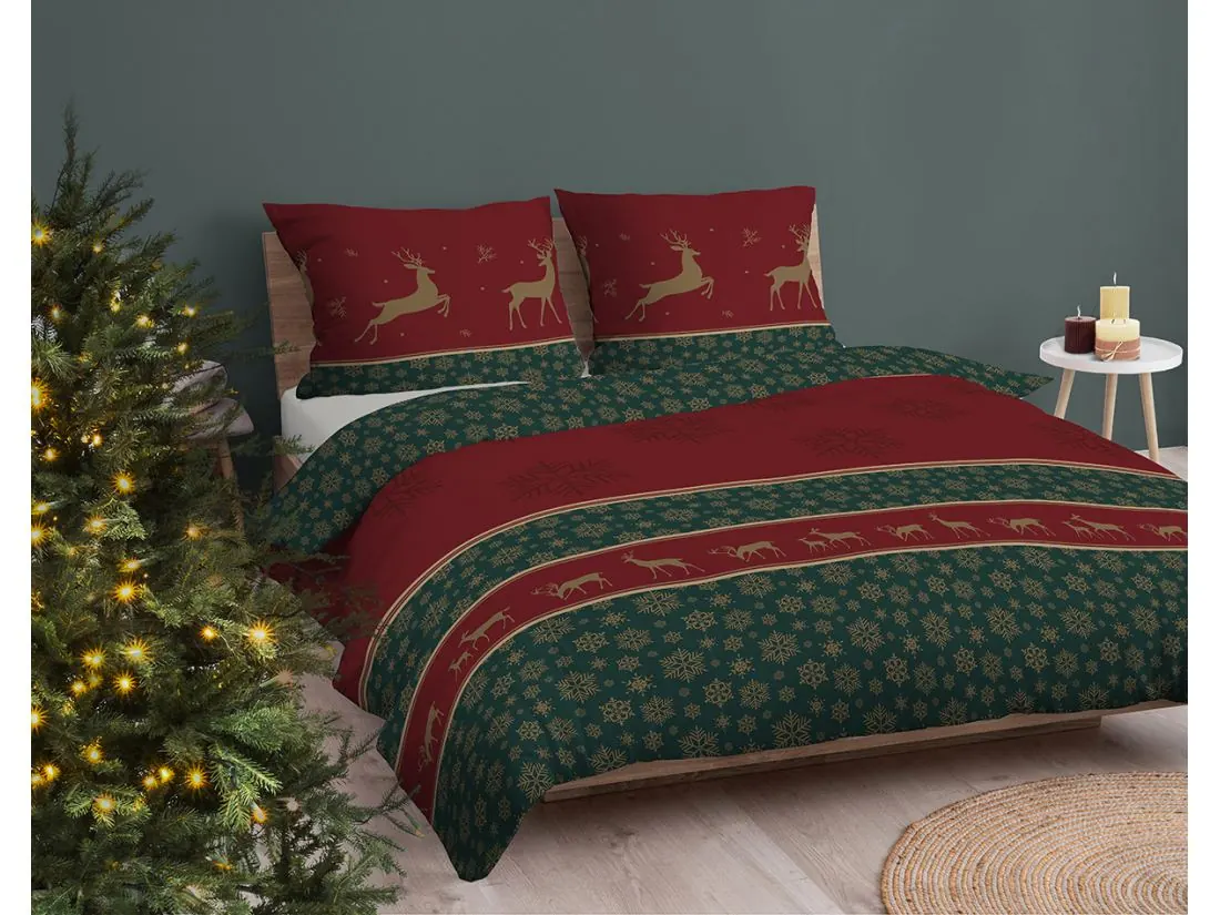 Pościel bawełniana świąteczna 160x200 + 2x70x80 cm to naturalny komfort połączony z magicznym i eleganckim wzorem, idealna na zimowy czas Bożego Narodzenia.