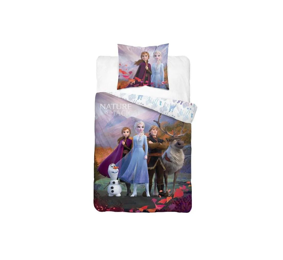 Pościel dziecięca licencyjna Frozen w rozmiarze 160x200 cm z poszewką 70x80 cm została wykonana z wysokogatunkowej bawełny.