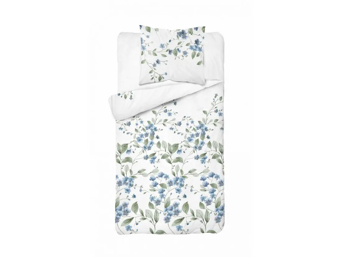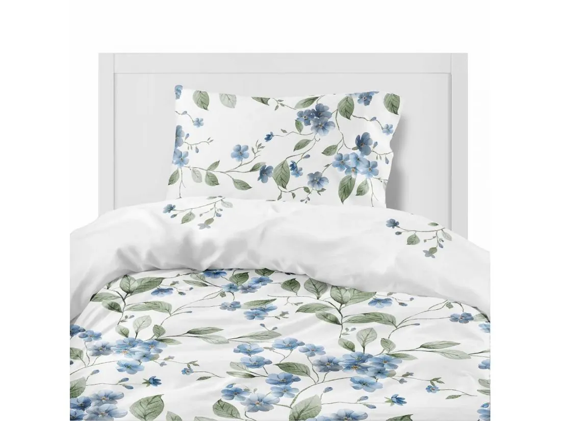 Pościel flanelowa 140x200 – drobne niebieskie kwiatuszki na białym tle