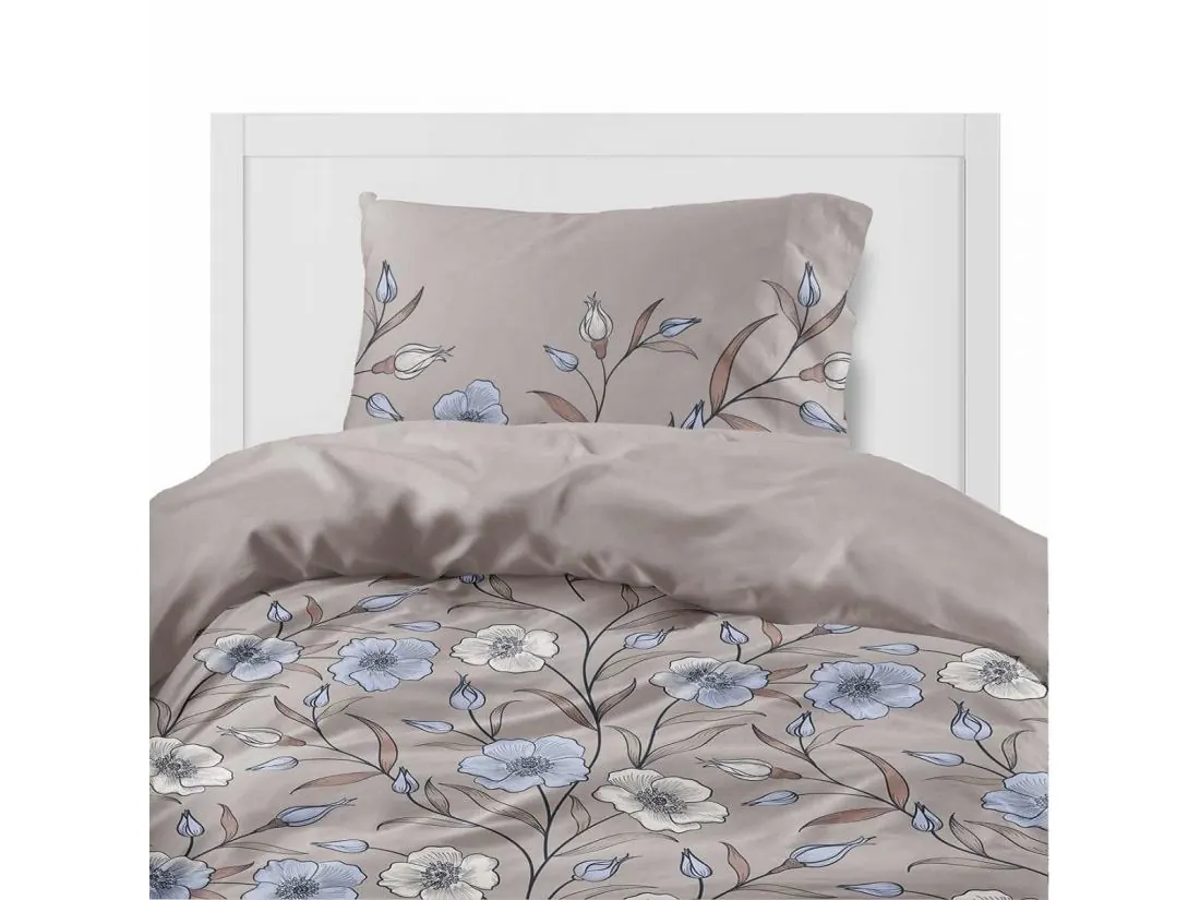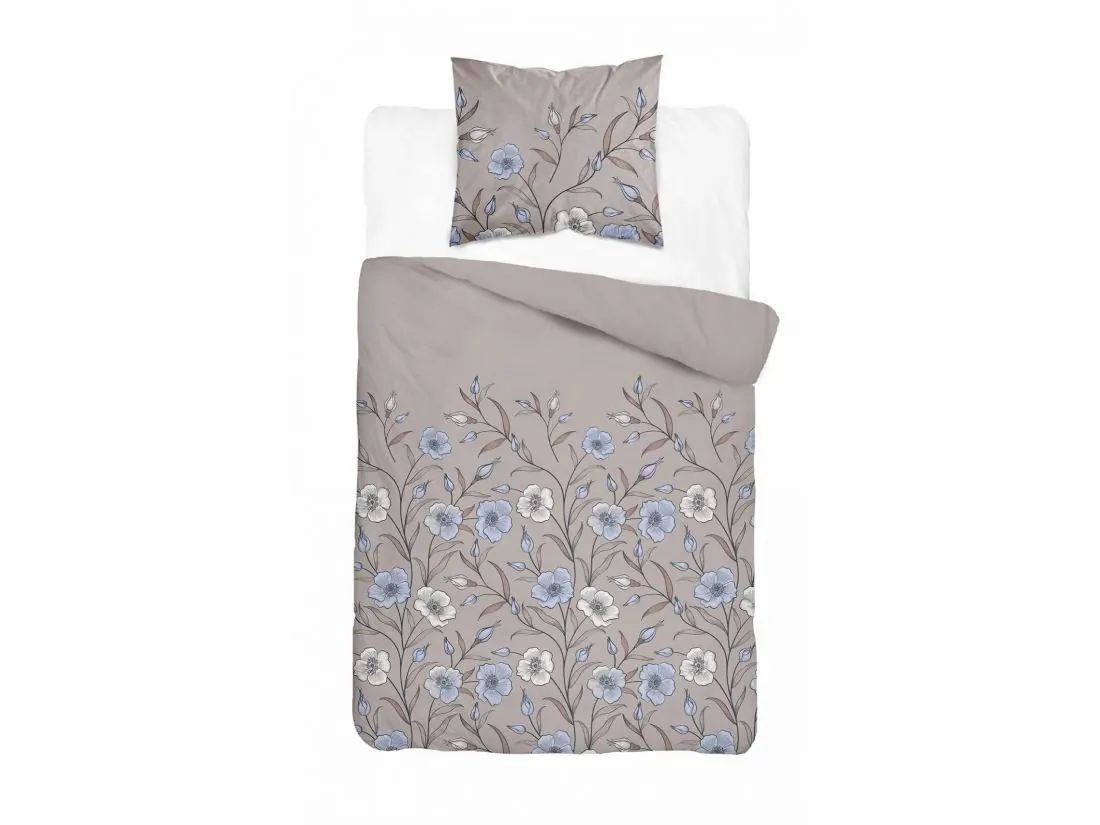 Wzór przedstawia małe, niebieskie kwiatki z delikatnymi listkami, rozrzucone równomiernie na ciepłym, jasno beżowym tle. Motyw jest subtelny i romantyczny, inspirowany naturą, dzięki czemu pościel wprowadza do wnętrza atmosferę spokoju, świeżości i domowego ciepła. To idealna propozycja dla miłośników klasycznych, kwiatowych wzorów oraz sypialni w stylu rustykalnym, vintage lub prowansalskim.
