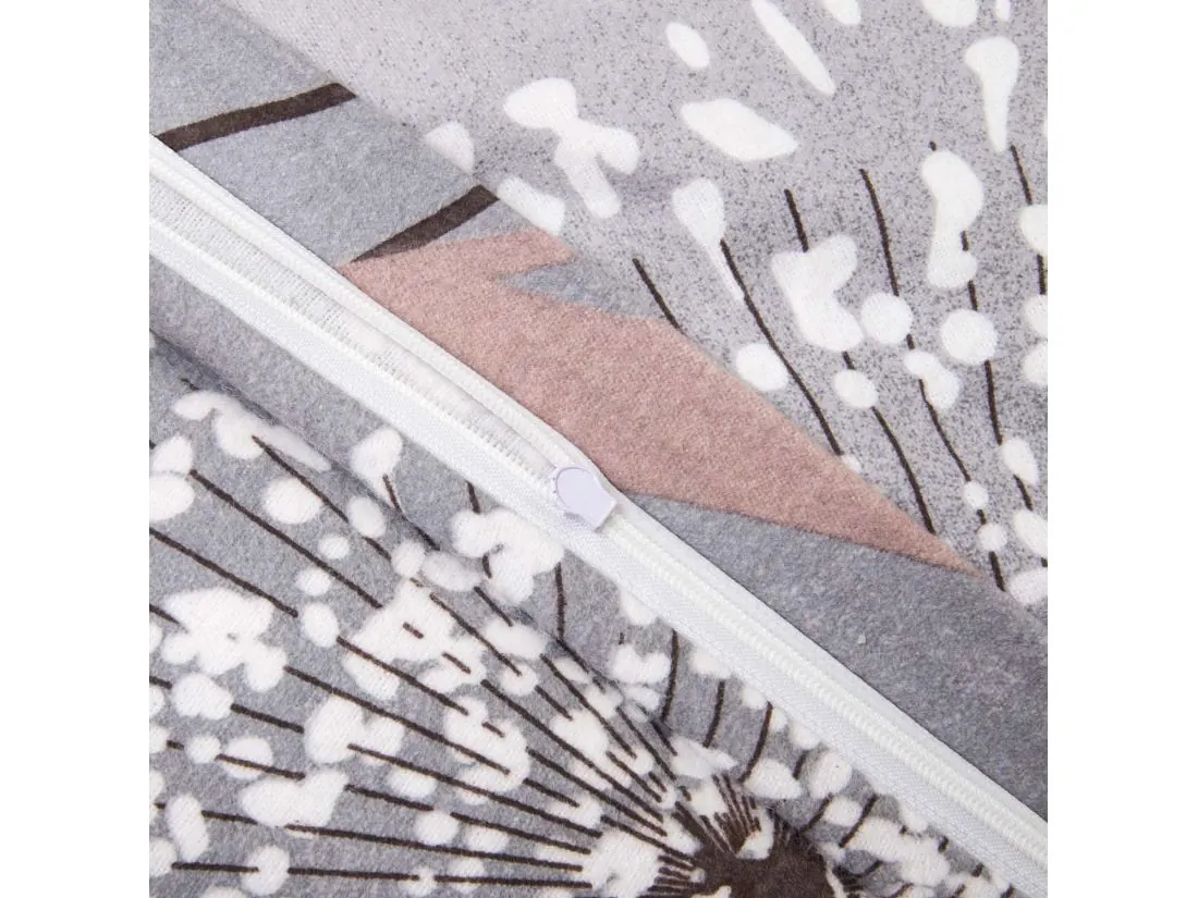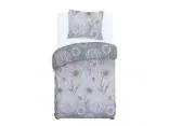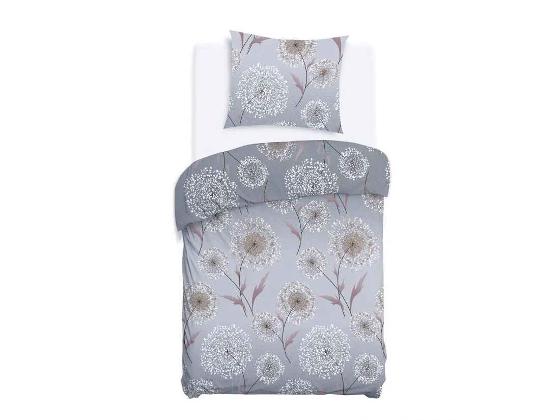 Pościel flanelowa 140x200 na zimę – białe dmuchawce na szarym tle, stylowa i wygodna