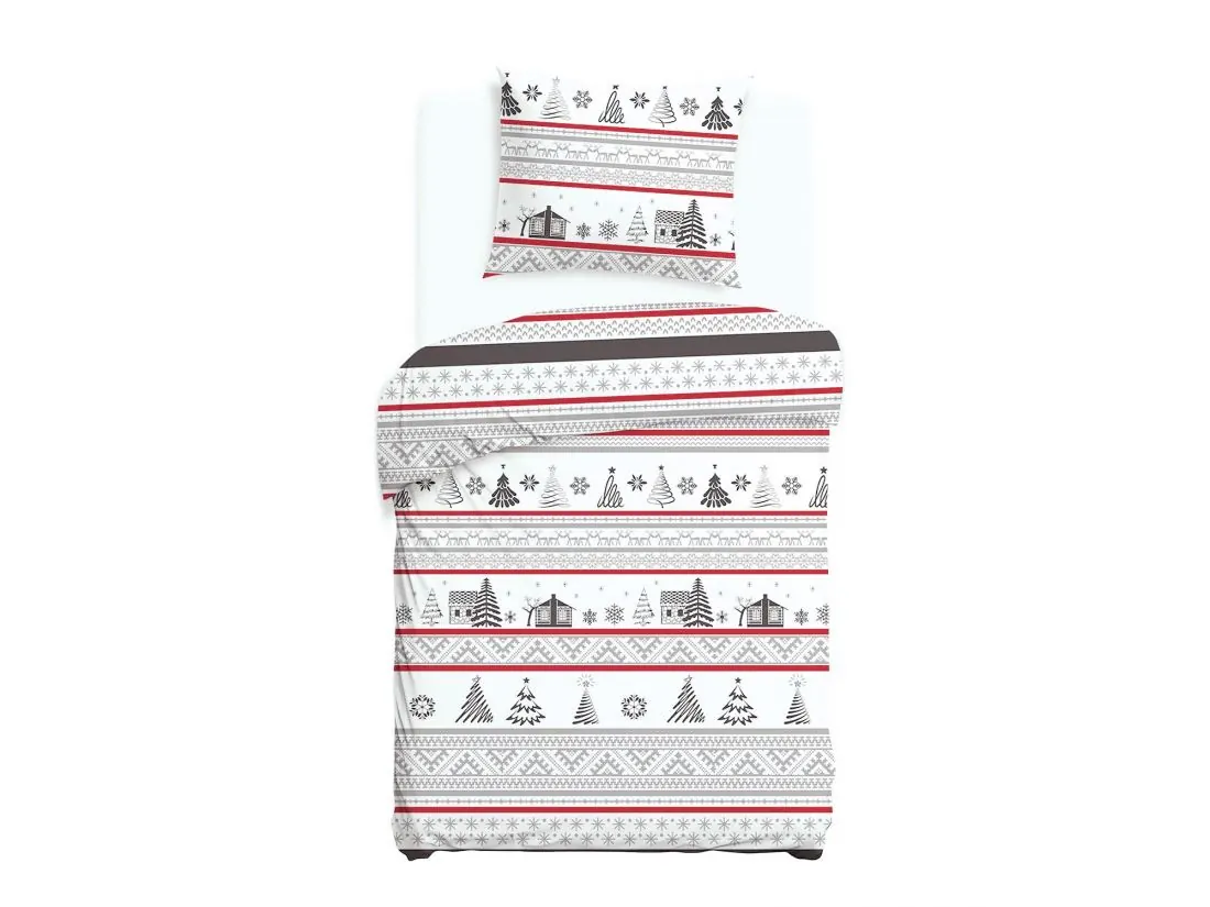 Pościel flanelowa 140x200 na zimę – gwiazdki i choinki, białe tło