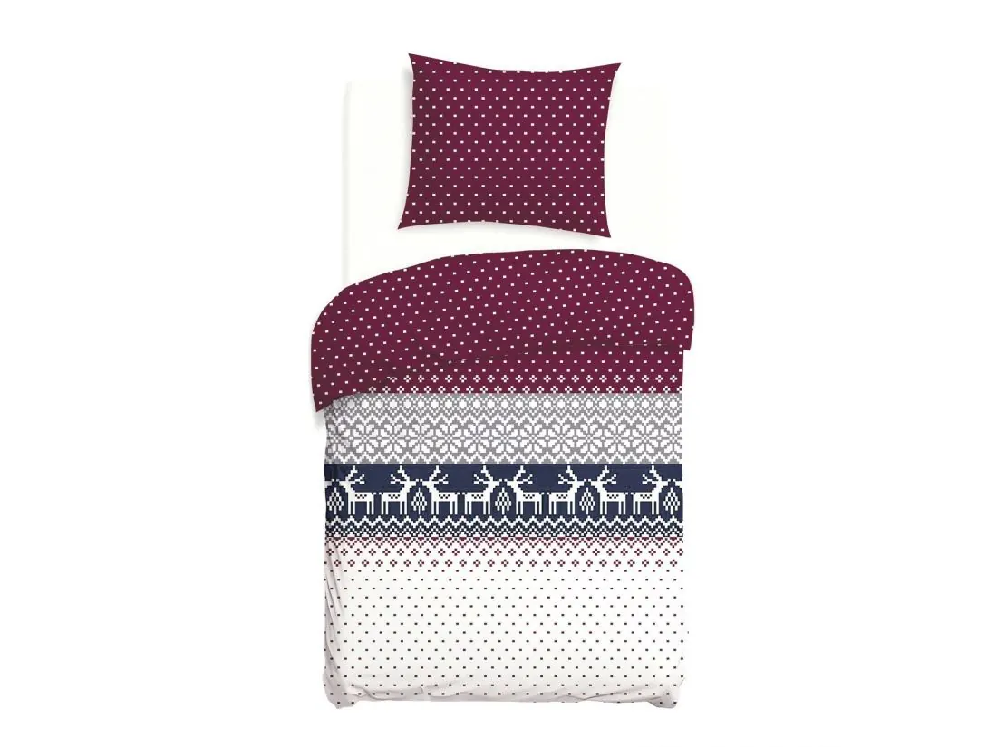 Pościel flanelowa z reniferami i kwadracikami na bordowym tle to idealna propozycja na świąteczny sezon. Urokliwe renifery na białym tle w połączeniu z delikatnym, drobnym wzorem kwadracików w bordowym odcieniu tworzą ciepłą, świąteczną atmosferę. Zestawienie białego tła z bordowymi akcentami nadaje pościeli elegancji i przytulności, doskonale pasując do zimowych, świątecznych aranżacji. Miękka flanela otula ciało, zapewniając komfortowy sen, a elegancki wzór wnosi do sypialni wyjątkowy, zimowy urok.