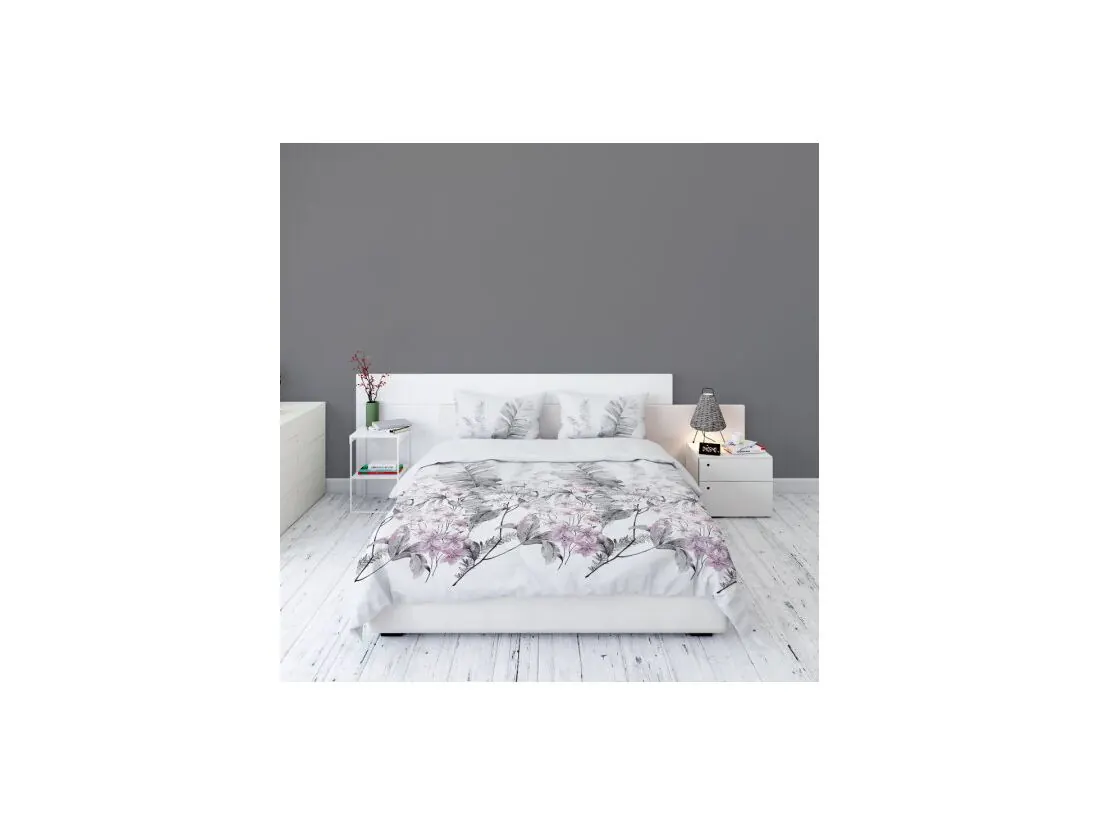 Pościel flanelowa 140x200+1/70x80 różowo szare piórka