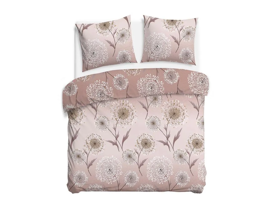 Pościel flanelowa 160x200 – beżowe tło z białymi dmuchawcami, ciepła i miękka idalna na zimę