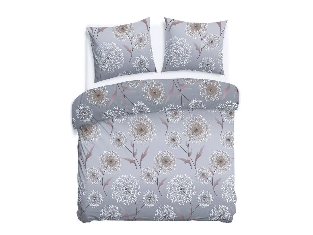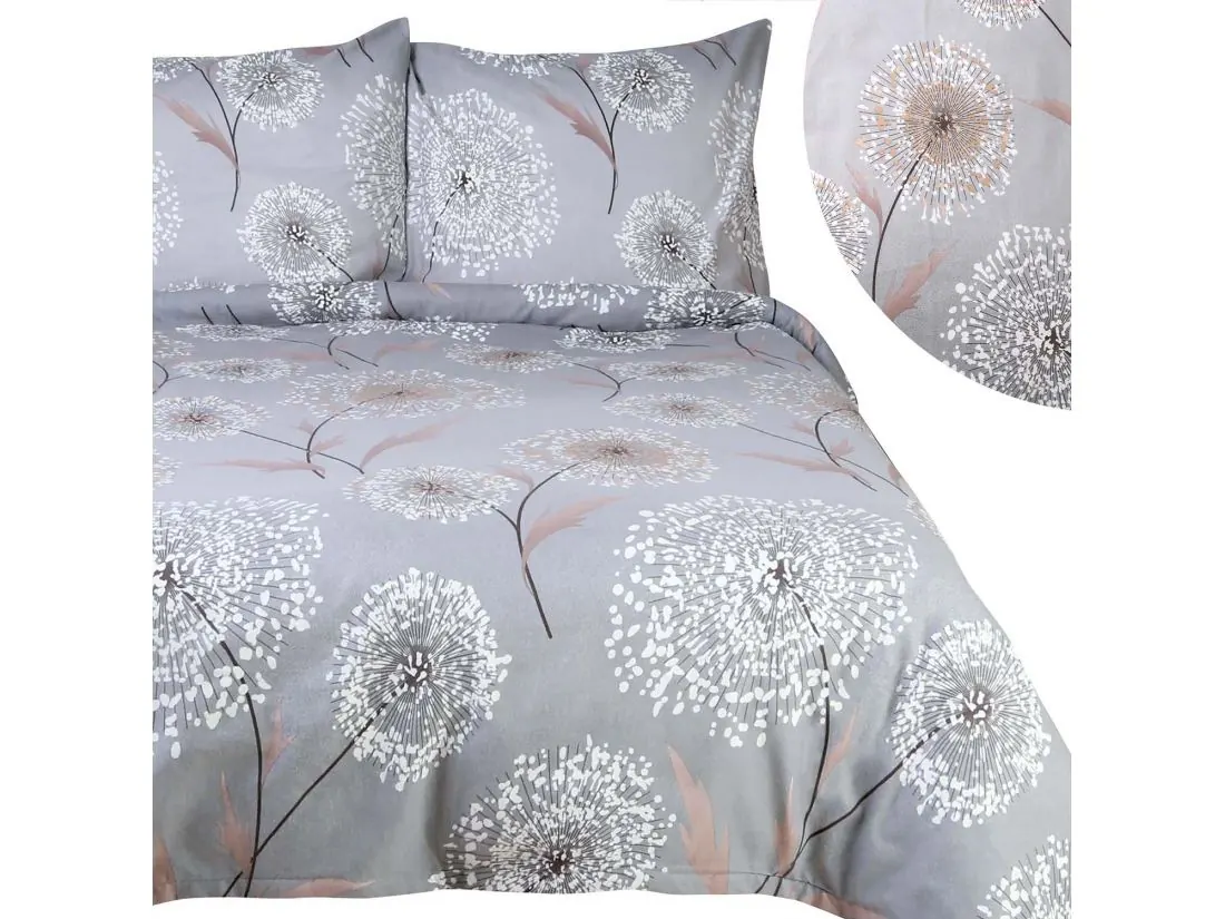 Pościel flanelowa 160x200 – białe dmuchawce na szarym tle, zimowa