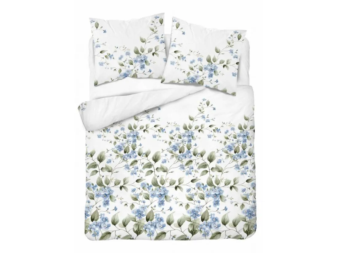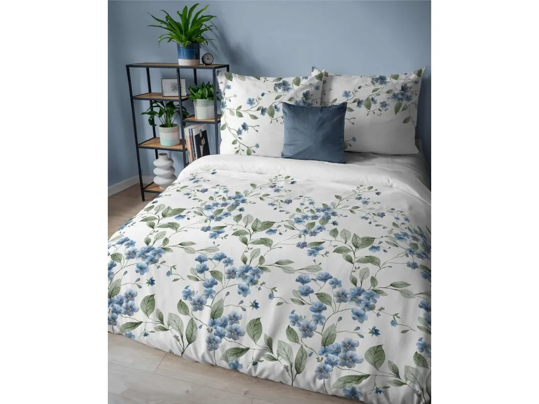 Pościel flanelowa 160x200 – drobne niebieskie kwiatuszki na białym tle