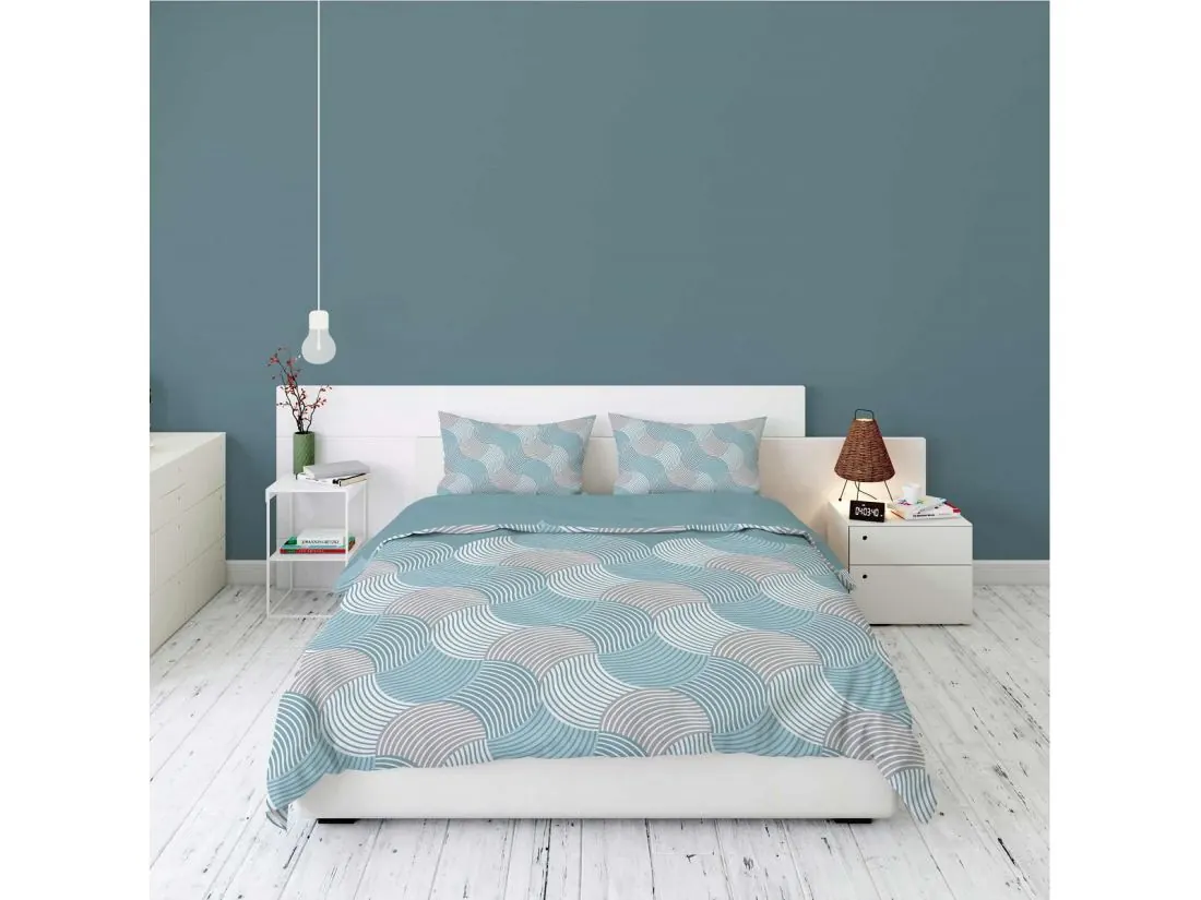 Pościel flanelowa 160x200 – geometryczny wzór w kolorze miętowym