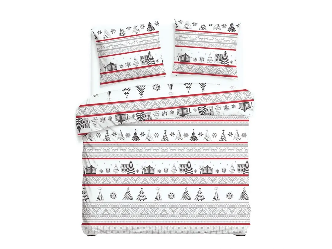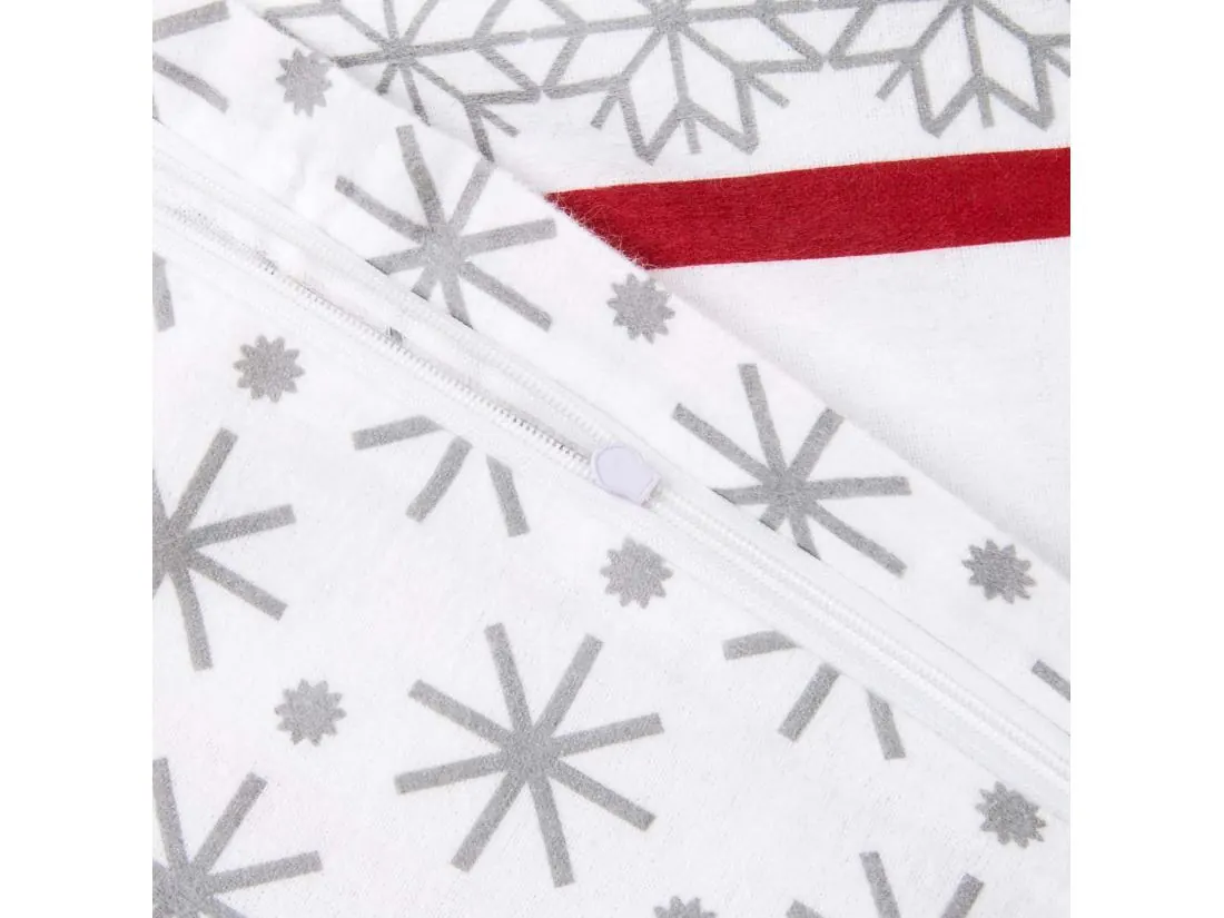 Pościel flanelowa z gwiazdkami i choinkami na białym tle to doskonały wybór na zimowe wieczory. Urocze czerwone choinki i białe gwiazdki na białym tle z subtelnymi szaro-czerwonymi akcentami tworzą ciepłą, świąteczną atmosferę, idealną na chłodne dni. Miękka flanela otula ciało, zapewniając komfortowy sen, a elegancki wzór wnosi do sypialni wyjątkowy, zimowy urok. Zmień swoją sypialnię w przytulne, świąteczne miejsce, które zachwyca przez cały sezon!