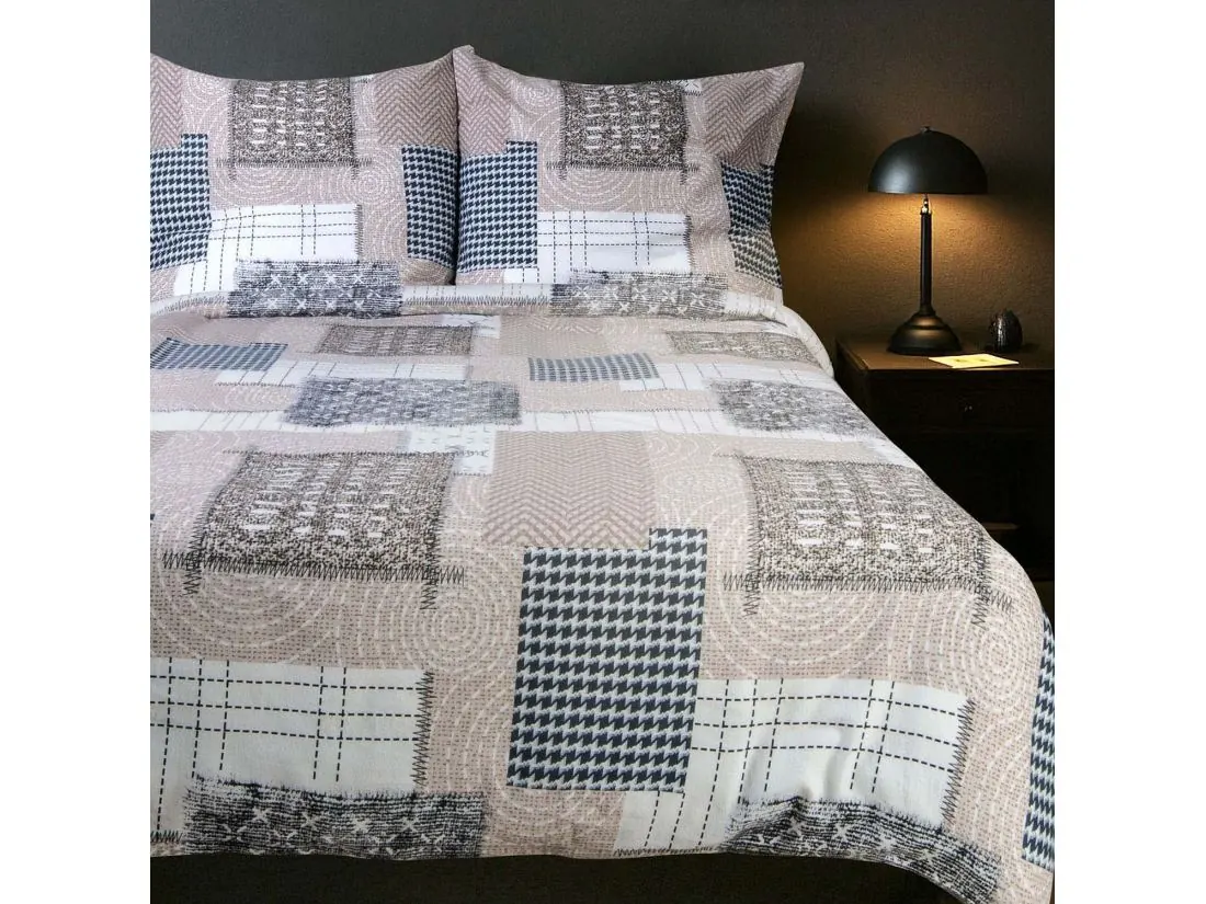 Pościel flanelowa 160x200 – nowoczesny wzór na beżowym tle, geometryczne akcenty - miękka i ciepła