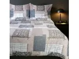 Pościel flanelowa z beżowym tłem to połączenie subtelnej elegancji i nowoczesnego wzornictwa. Na delikatnym, ciepłym tle pojawiają się geometryczne kształty – prostokąty, w których wnętrzach kryją się wzory przypominające pipetki, krzyżyki oraz przerywane linie, układające się w kwadraty. Całość tworzy minimalistyczny, ale intrygujący motyw, który z jednej strony przyciąga wzrok, z drugiej – wprowadza harmonię i spokój do wnętrza. To doskonały wybór dla osób szukających pościeli, która w subtelny sposób łączy nowoczesny design z klasycznym komfortem. Pościel z flaneli, dzięki swojej miękkiej i ciepłej strukturze, dodatkowo podkreśla przytulny, naturalny klimat wzoru, zapewniając komfortowy i ciepły sen przez cały rok.