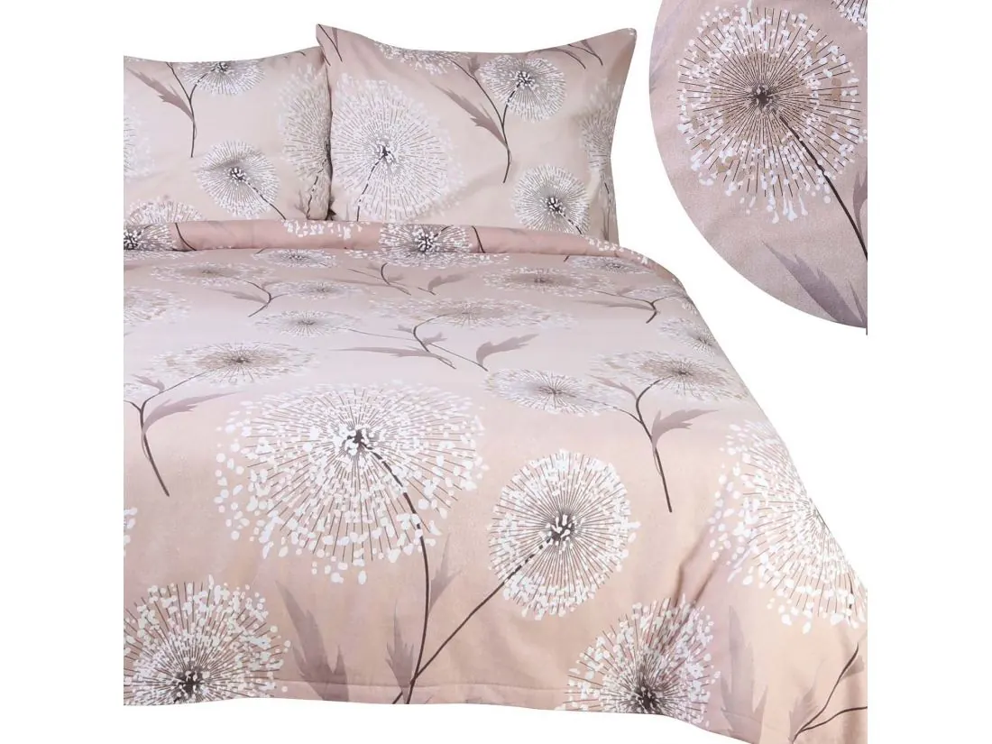 Pościel flanelowa 180x200 – beżowe tło z białymi dmuchawcami, ciepła i miękka idalna na zimę
