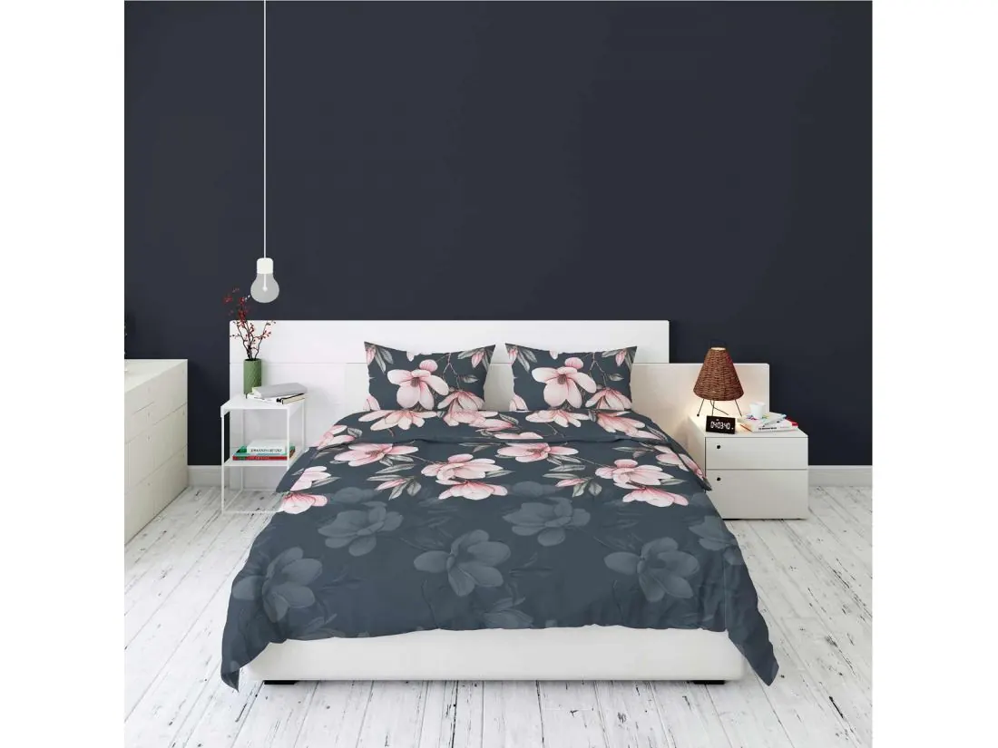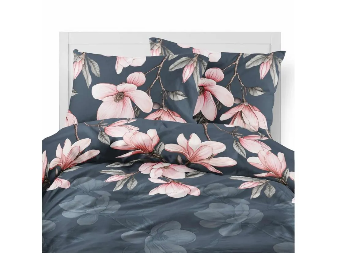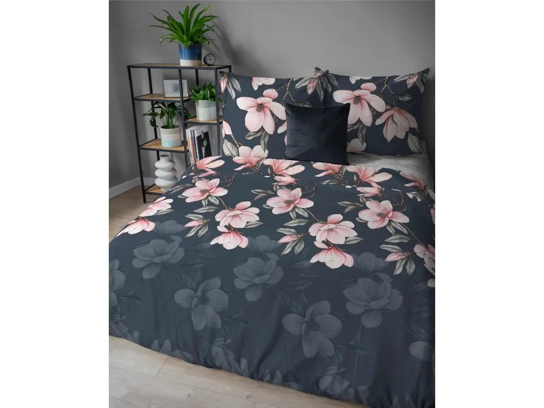 Pościel flanelowa 220x200 – różowe magnolie na ciemnym tle