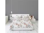 Wzór przedstawia drobne, delikatne kwiaty w odcieniach złota i szarości, równomiernie rozmieszczone na jasnym, kremowym tle. Ta subtelna kompozycja przywodzi na myśl delikatną łączkę w stonowanej, eleganckiej palecie barw. Złote akcenty dodają pościeli ciepła i lekkości, a szarości równoważą całość, tworząc wzór, który nie przytłacza, a jednocześnie nadaje sypialni charakteru i wyrafinowania.