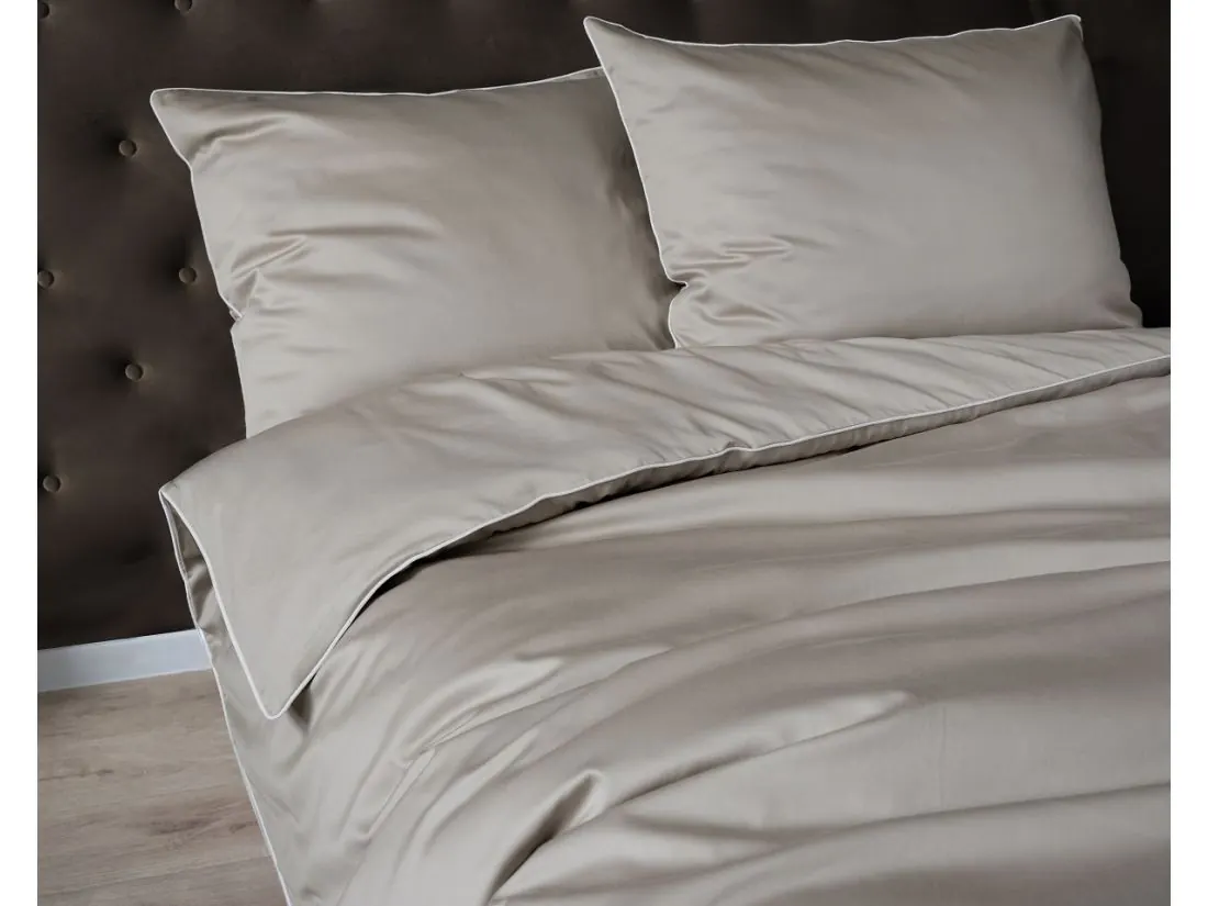 Pościel makosatyna bawełniana 180x200 beżowa – komplet pościeli satynowej z elegancką lamówką