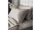 Subtelny odcień beżu wprowadza do wnętrza harmonię, ciepło i przytulną elegancję, a dekoracyjna biała lamówka nadaje całości luksusowego, hotelowego charakteru.
