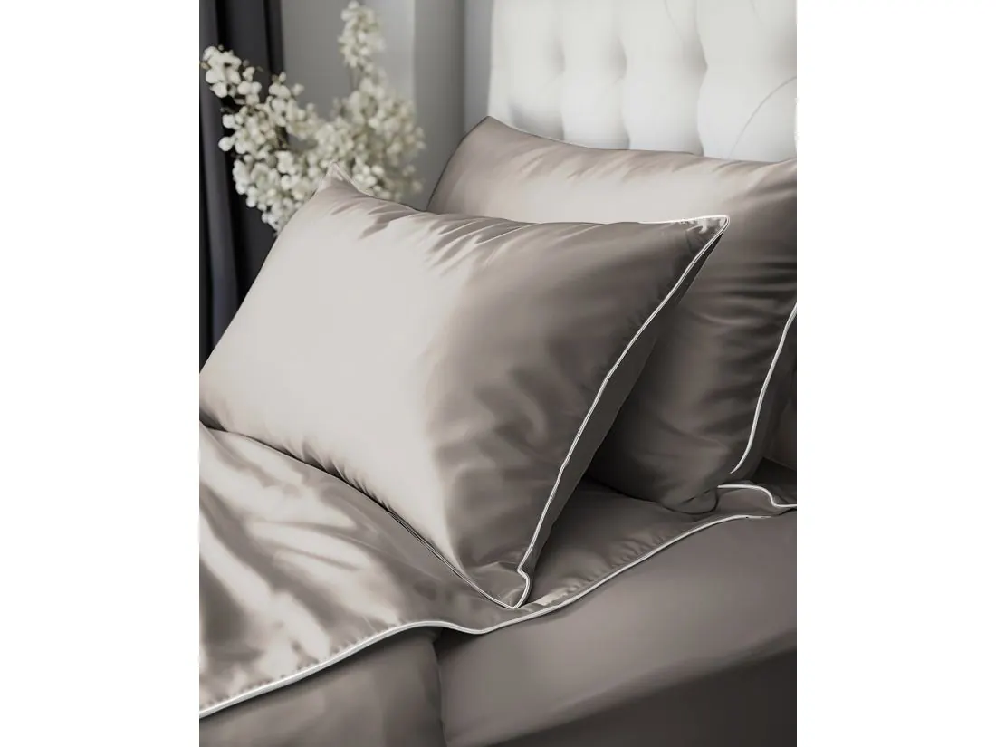 Biała lamówka podkreśla elegancję i sprawia, że komplet prezentuje się jak luksusowa pościel hotelowa klasy premium.