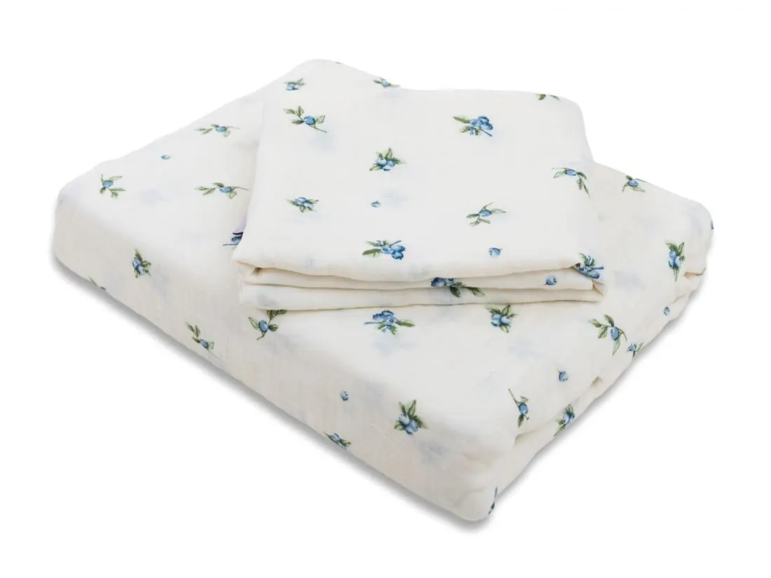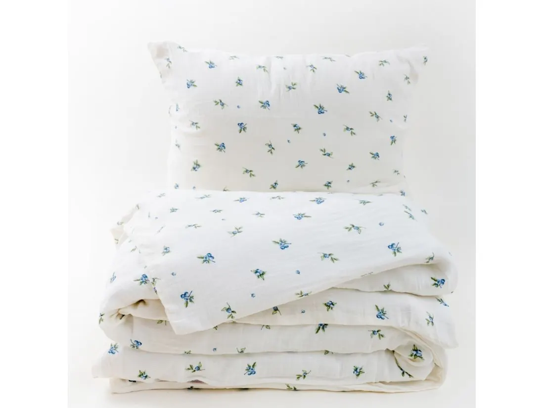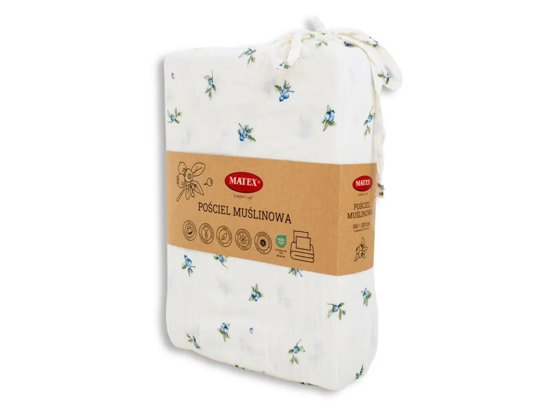 Pościel muślinowa 220x200 cm JAGODY – delikatna, przewiewna, dwuwarstwowa, naturalna bawełna