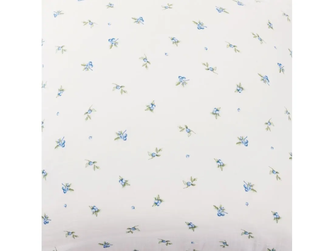 Wzór pościeli JAGODY to subtelna kompozycja drobnych, akwarelowych gałązek z niebieskimi jagodami i zielonymi listkami. Motyw został rozrzucony równomiernie na jasnokremowym tle, co nadaje całości lekkości i delikatności inspirowanej naturą. Wyraziste, niebieskie akcenty wprowadzają do sypialni świeżość oraz wyjątkowy, letni klimat. Taki wzór świetnie komponuje się zarówno z minimalistycznymi, skandynawskimi jak i rustykalnymi aranżacjami wnętrz, dodając im przytulności i naturalnego charakteru.