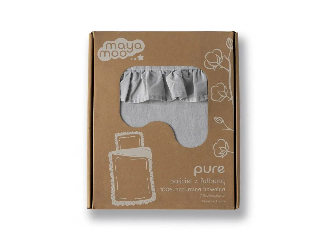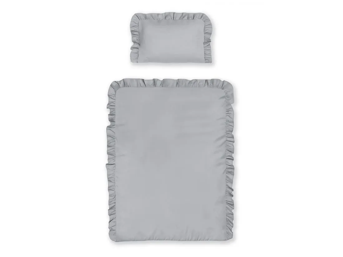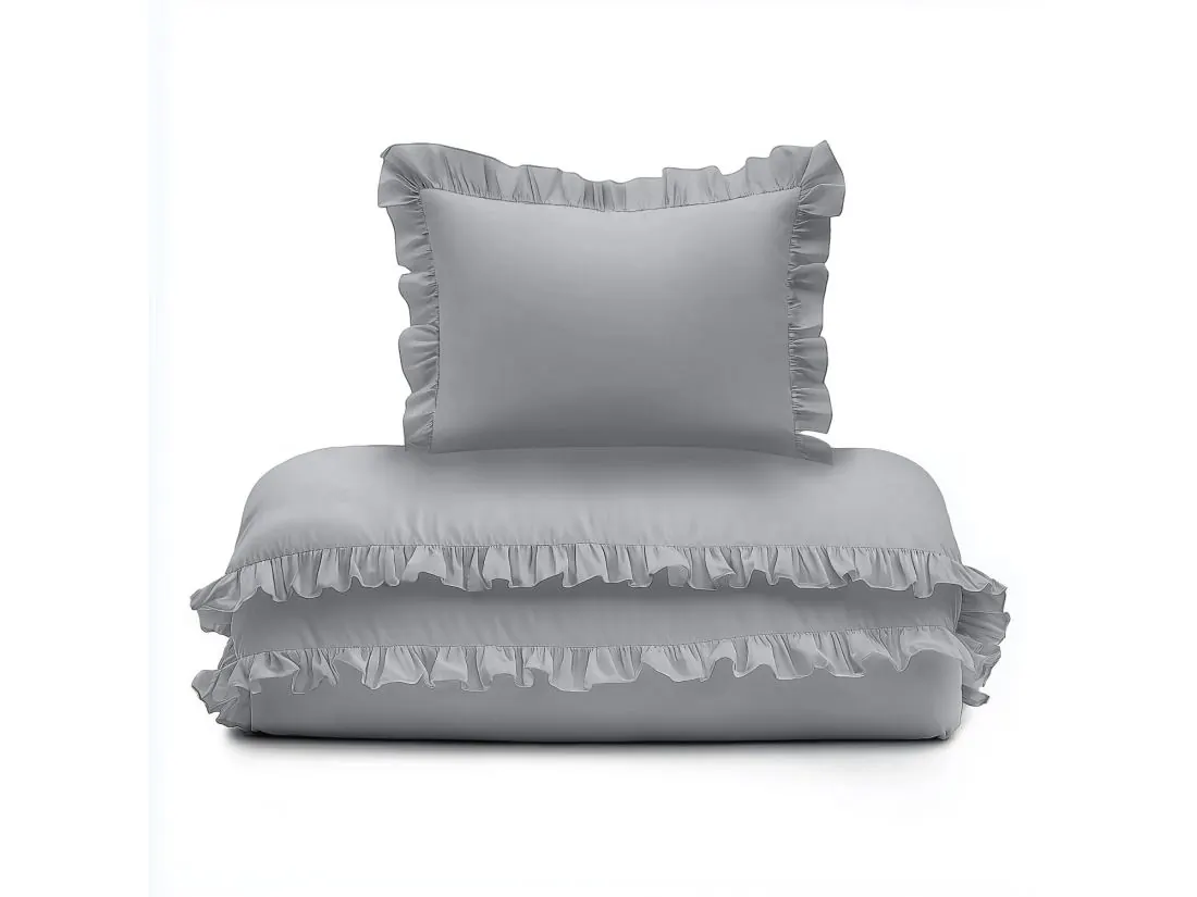 Wymiary: | poszwa - 100x135 cm z falbanką na guziki 1 poszewka na poduszki - 40x60 cm z falbanka na guziki |