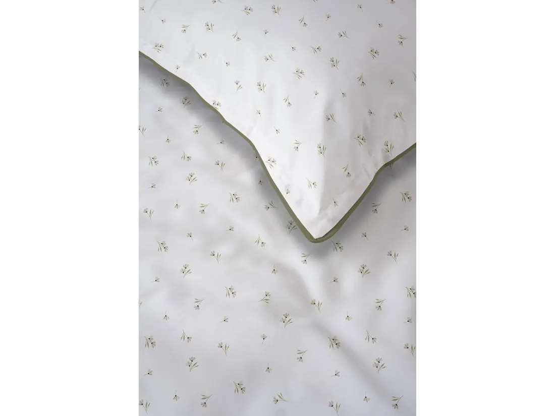 Pościel Perkal 160x200 Biała w Oliwkowe Drobne Kwiatki z Lamówką