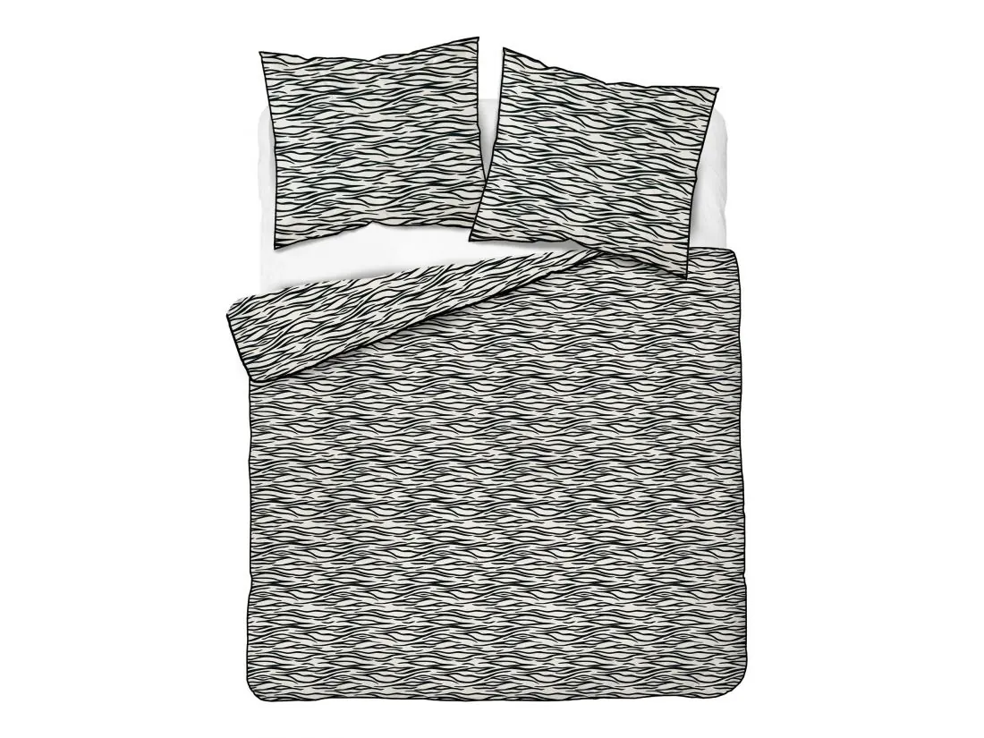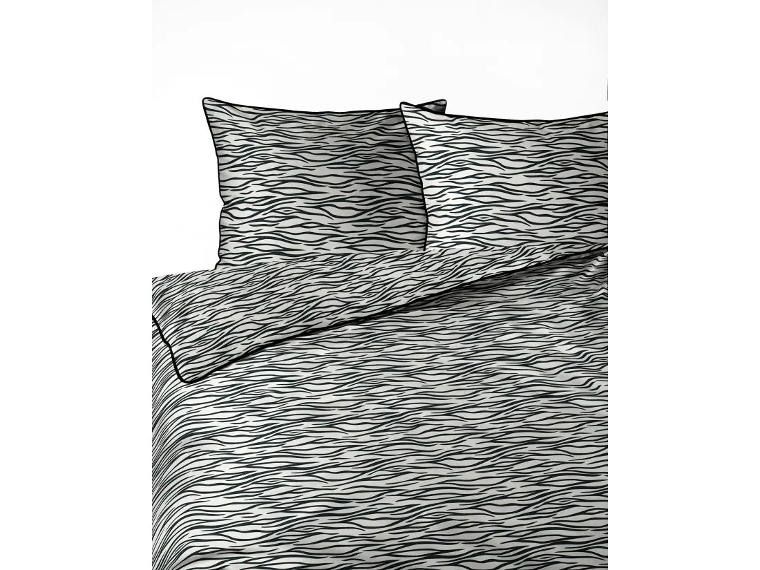 Pościel perkalowa 160x200 + 2/70x80 z lamówką + torba, biało czarne fale Lame Percale 5591 b