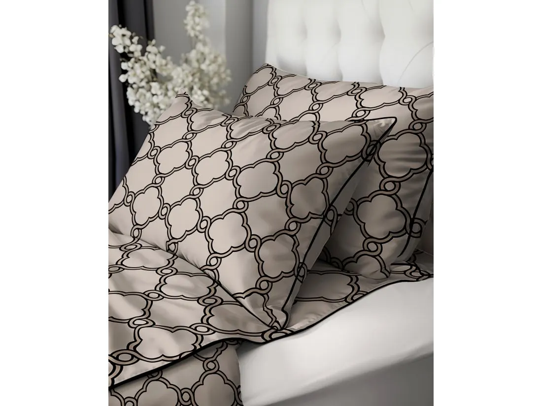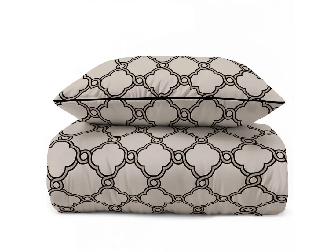 Pościel perkalowa 220x200 + 2/70x80 z lamówką + torba, beżowy wzorek Lame Percale 5592 b