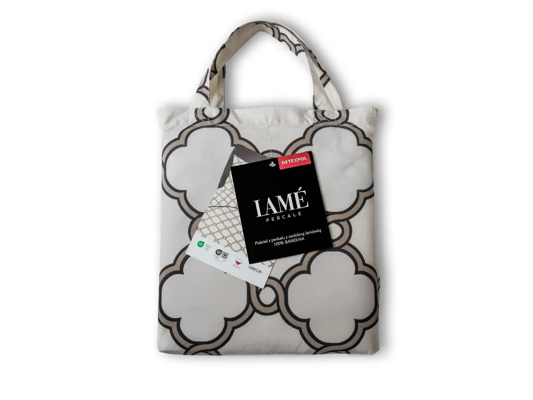 Każdy komplet pościeli Lame Percale zapakowany jest w dedykowaną torbę wykonaną z tej samej, perkalowej tkaniny. Dzięki niej można od razu ocenić jakość i wzór materiału, a później wykorzystać ją jako praktyczną torbę na zakupy.