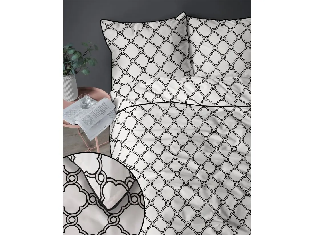 Pościel perkalowa 220x200 + 2/70x80 z lamówką + torba, wzorek biało czarny Lame Percale 5592 a