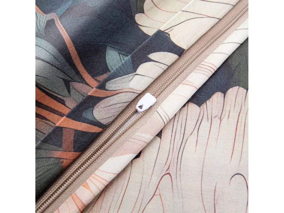 Dzięki zastosowaniu zaawansowanej techniki druku cyfrowego, kolory i detale wzoru są wyjątkowo trwałe, a ich intensywność pozostaje niezmienna nawet po wielokrotnym praniu. Pościel wyposażona jest w praktyczny zamek błyskawiczny, dyskretnie ukryty pod elegancką plisą, co podkreśla jej stylowy wygląd i zapewnia wygodę użytkowania.
