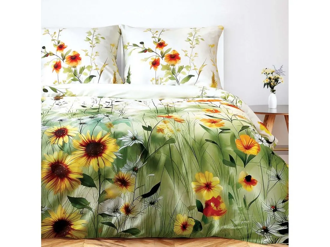 Pościel z satyny bawełnianej 160x200 Słoneczniki i Polna Łąka – Druk Cyfrowy