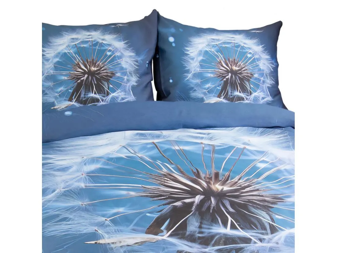 Ta pościel wyróżnia się niepowtarzalnym wzorem, który przyciąga wzrok i dodaje wnętrzu wyjątkowego charakteru. Na głębokim granatowym tle rozpościera się realistyczny wzór dmuchawca, który zachwyca swoją naturalnością i precyzją. Delikatne, białe detale dmuchawca kontrastują z ciemnym tłem, tworząc elegancki i spokojny efekt, który wprowadza do sypialni atmosferę harmonii i wyciszenia.