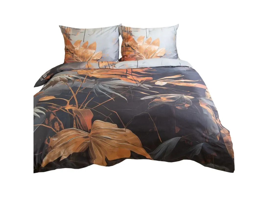 Pościel satyna bawełniana 180x200 +2/70x80 rude liście satynlove premium 12402