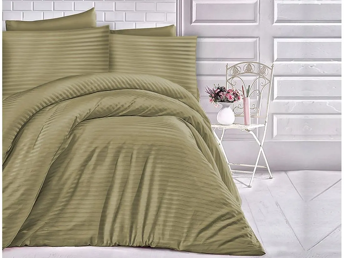 Jednobarwna pościel satynowa w delikatny deseń pasków z kolekcji Luxury model Cizgili w rozmiarze 180 x 200 cm w oliwkowej kolorystyce.