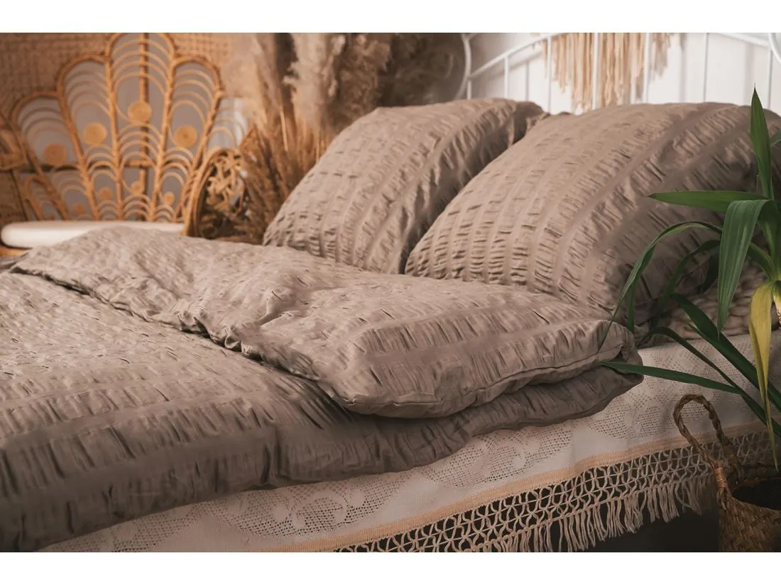 Niezwykła struktura gofrowania sprawia, że pościel zyskuje nie tylko wyjątkowy wygląd, ale również praktyczne właściwości. Dzięki strukturze gofrowania pościel zyskuje subtelny, ale zarazem wyrazisty charakter. Gofrowanie sprawia, że pościel nie wymaga prasowania co z pewnością docenią osoby ceniące sobie wygodę i oszczędność czasu.