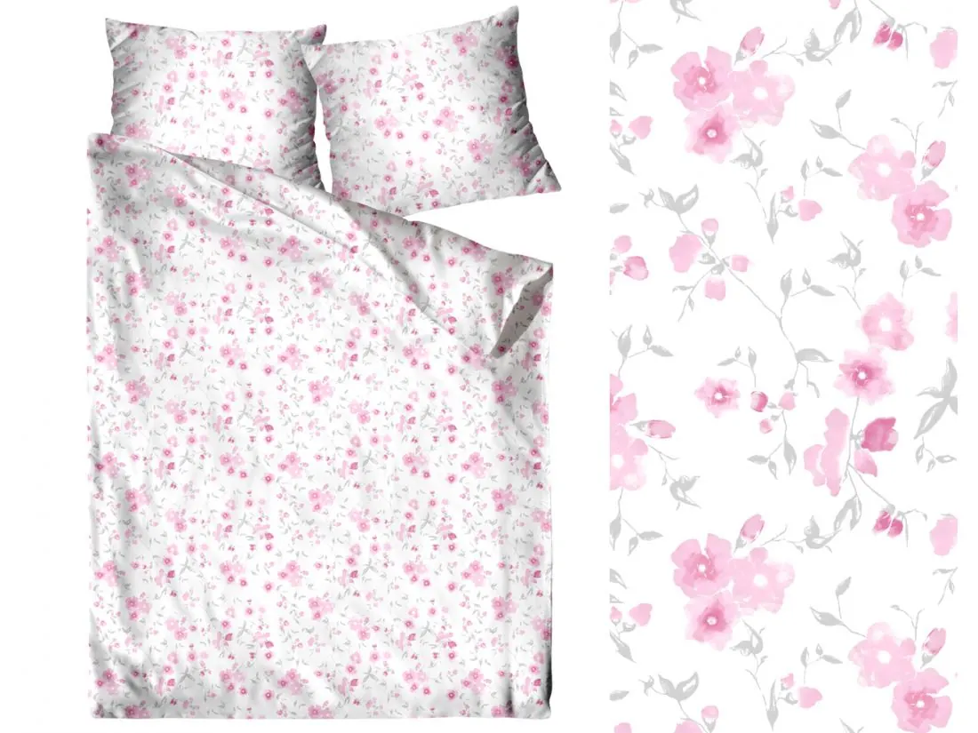 Pościel satynowa 140x200 + 70x80 Britania Greno Gold Line różowe kwiatuszki