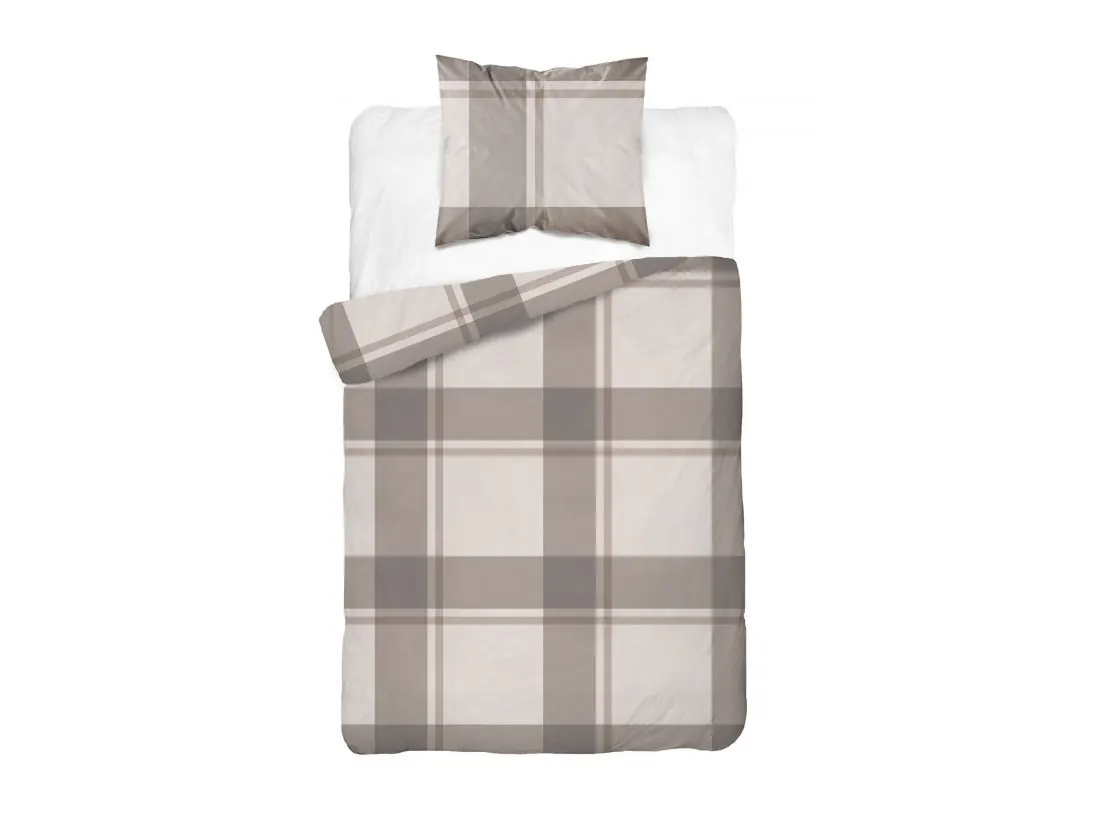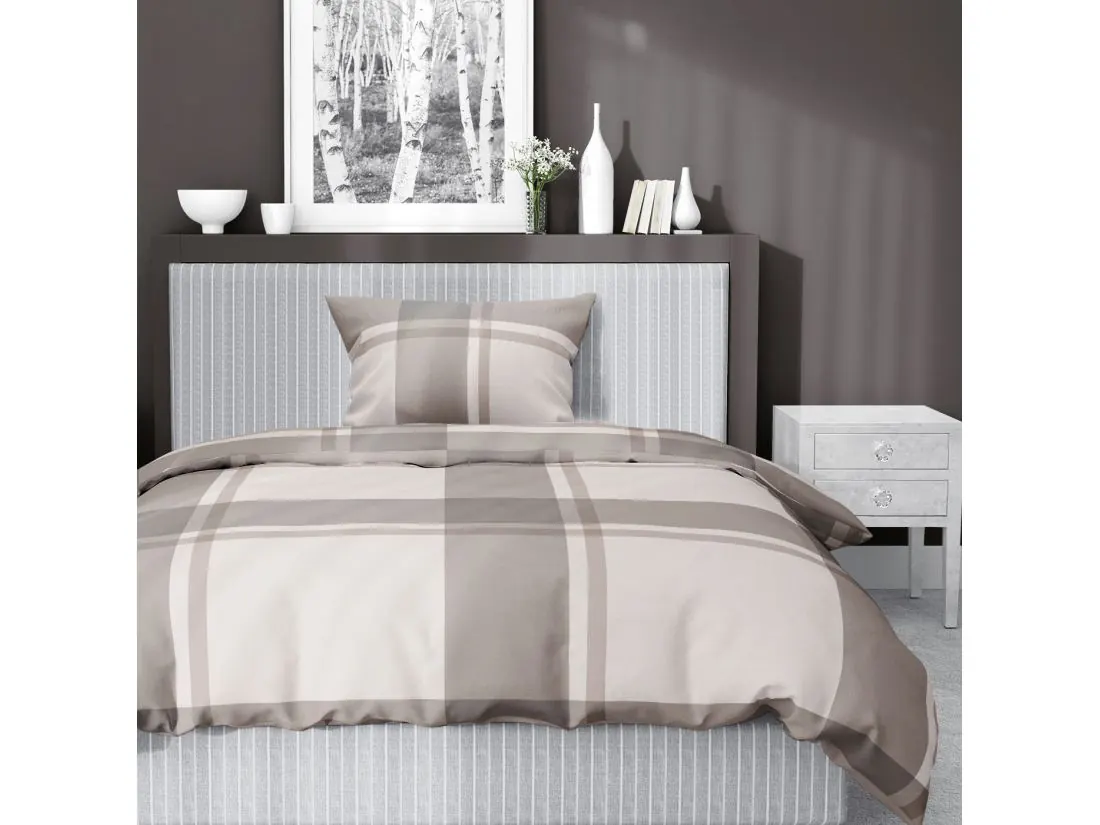 Pościel satynowa 140x200+1/70x80 beżowa kratka wz. 5218 b detexpol