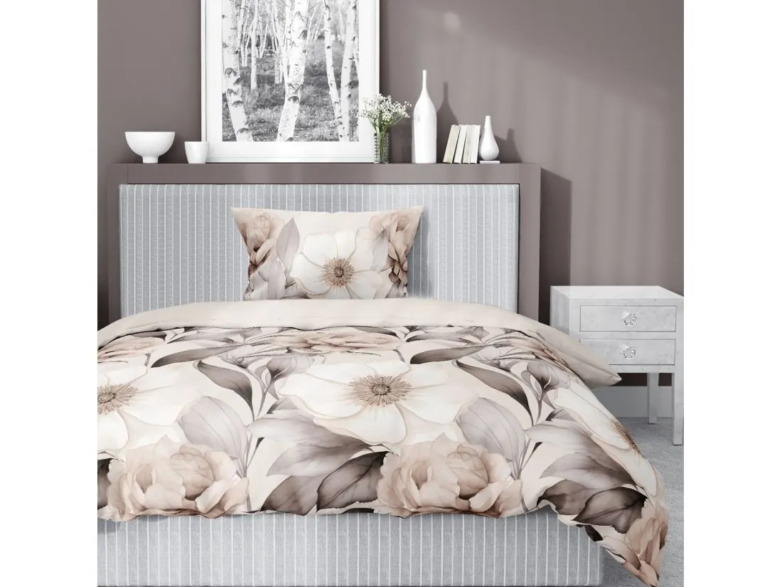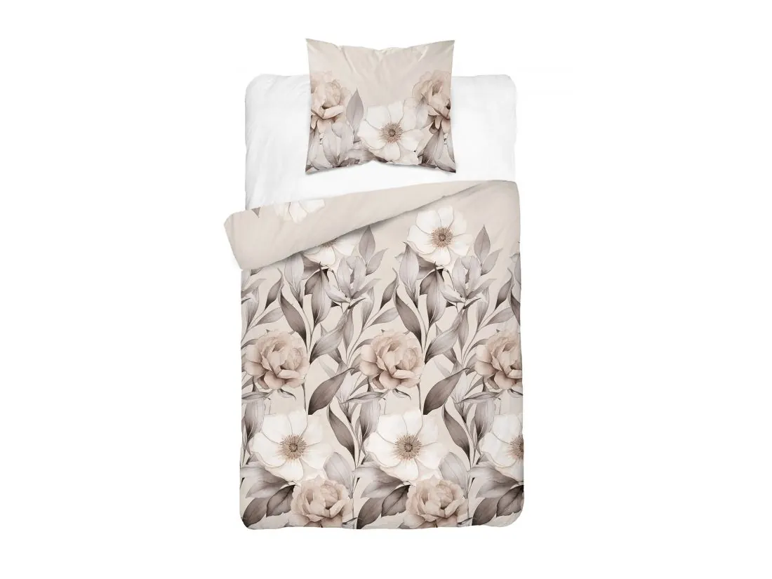 Pościel satynowa 140x200+1/70x80 beżowe begonie, wz. 5220 a detexpol