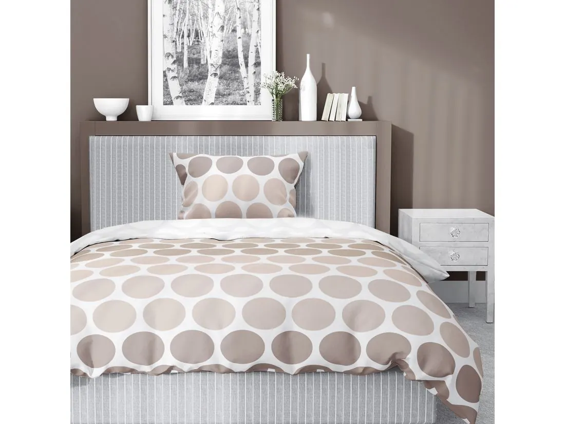 Pościel satynowa 140x200+1/70x80 beżowo brązowe kółka wz. 5474 a detexpol