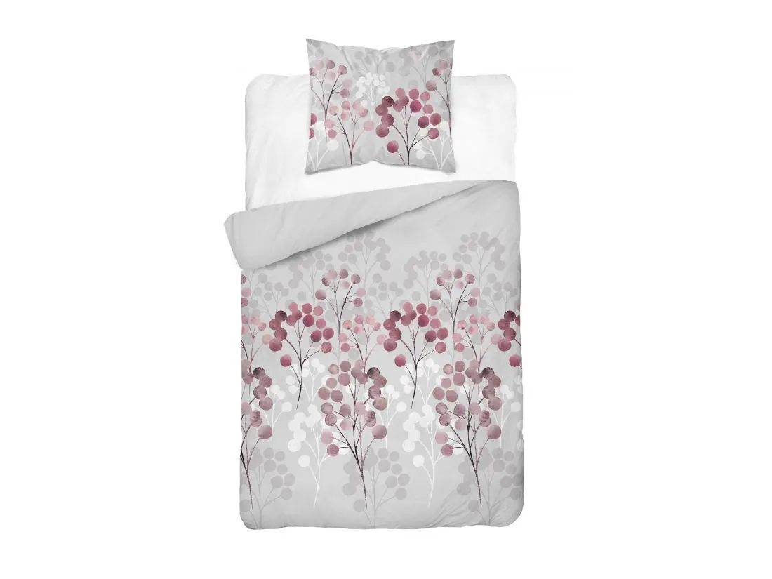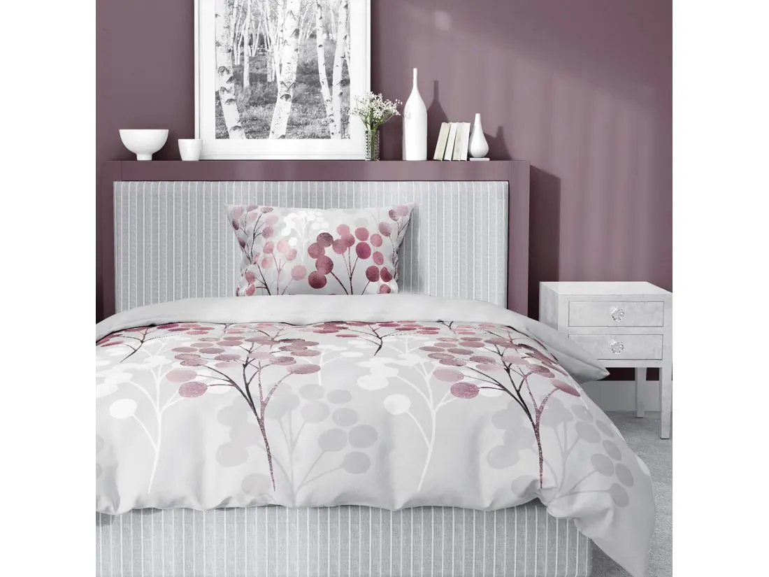 Pościel satynowa 140x200+1/70x80 bordowe gałązki wz. 5223 b detexpol