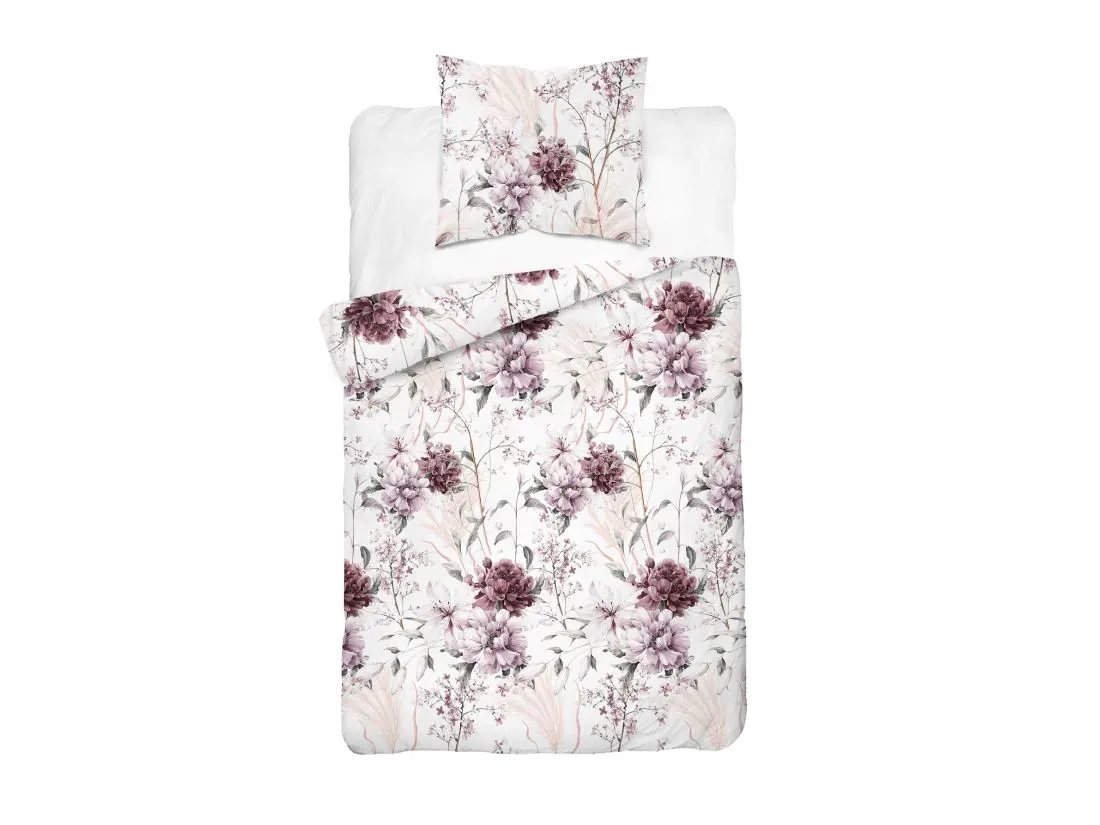 Pościel satynowa 140x200+1/70x80 bordowe piwonie wz. 5222 b detexpol