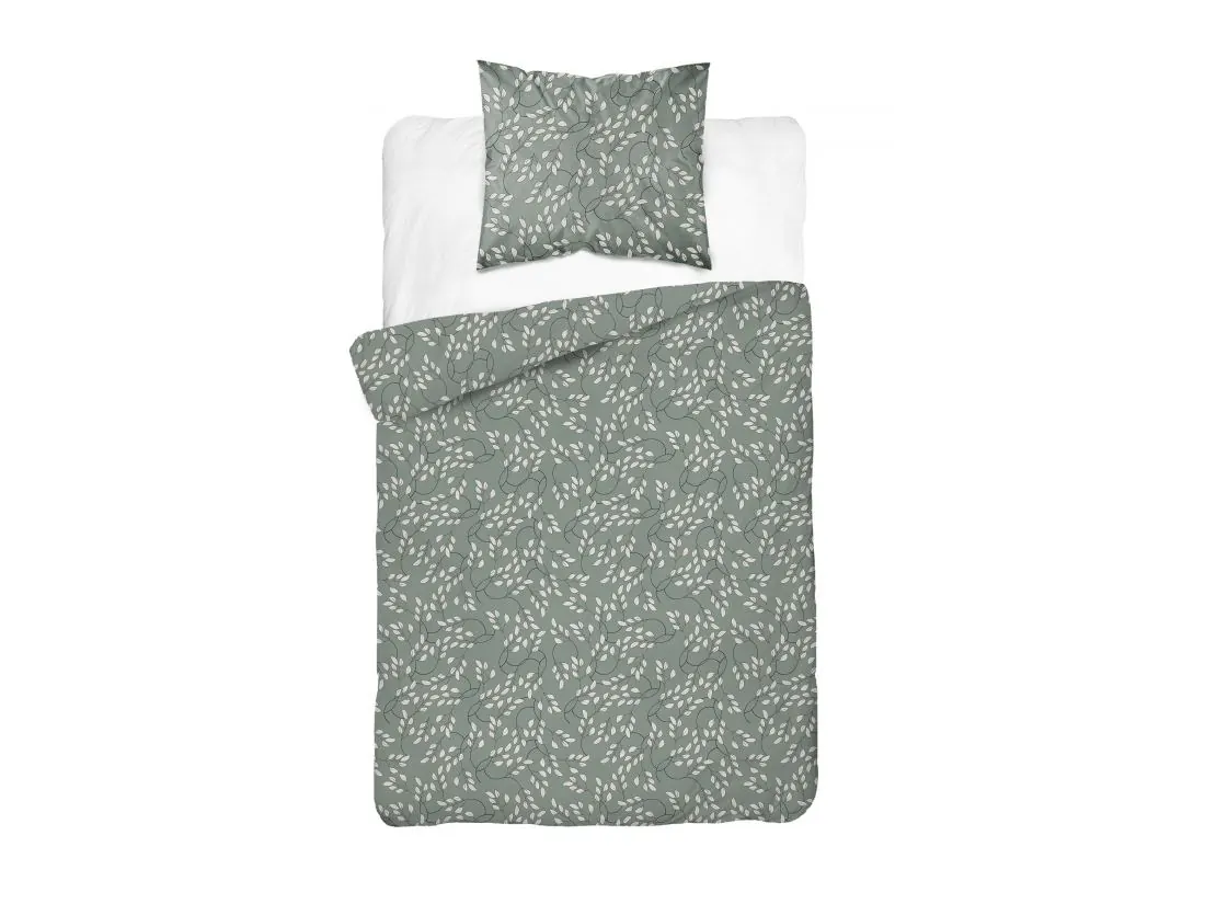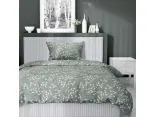 Pościel satynowa 140x200+1/70x80 drobne listki na oliwkowym tle wz. 5217 a detexpol