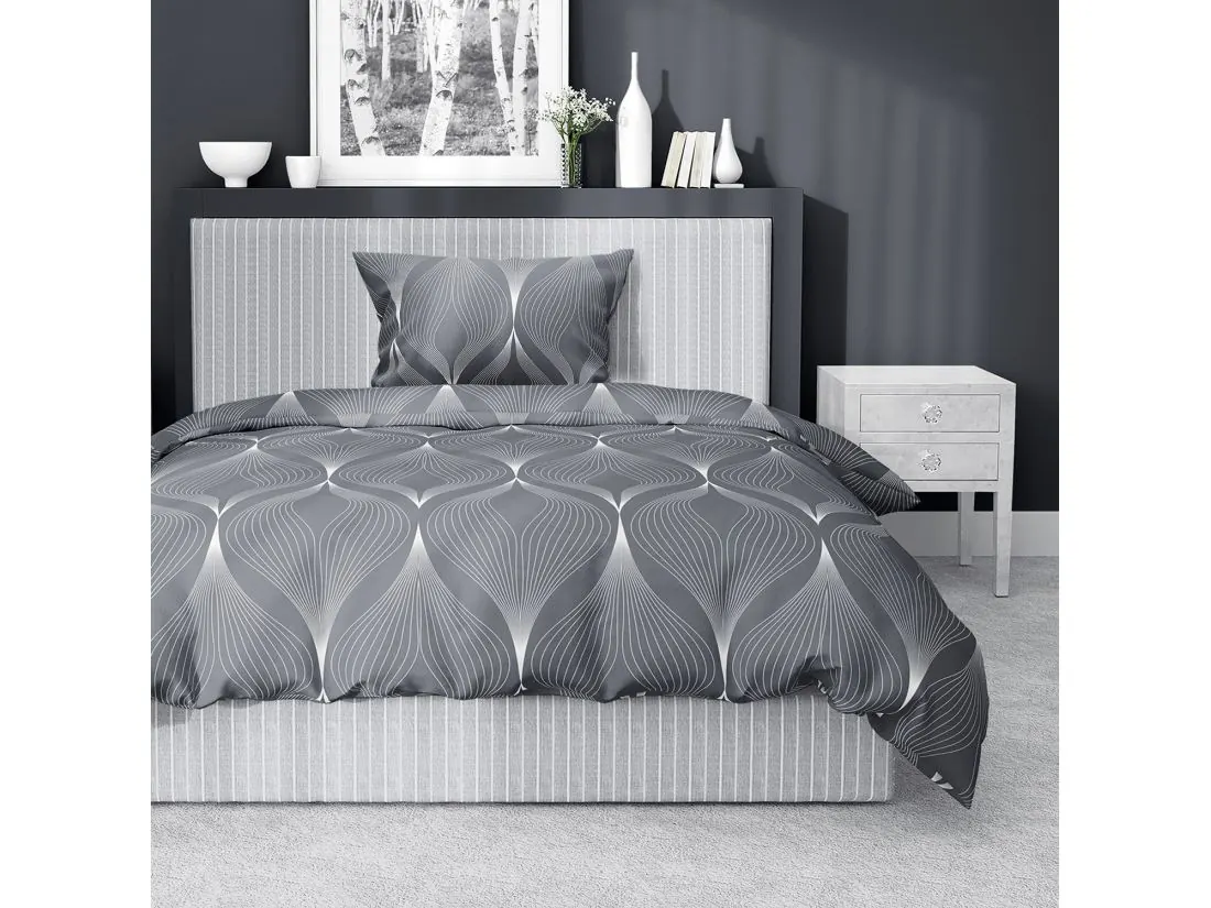 Pościel satynowa 140x200+1/70x80/ grafitowa spirala wz 4926 b detexpol