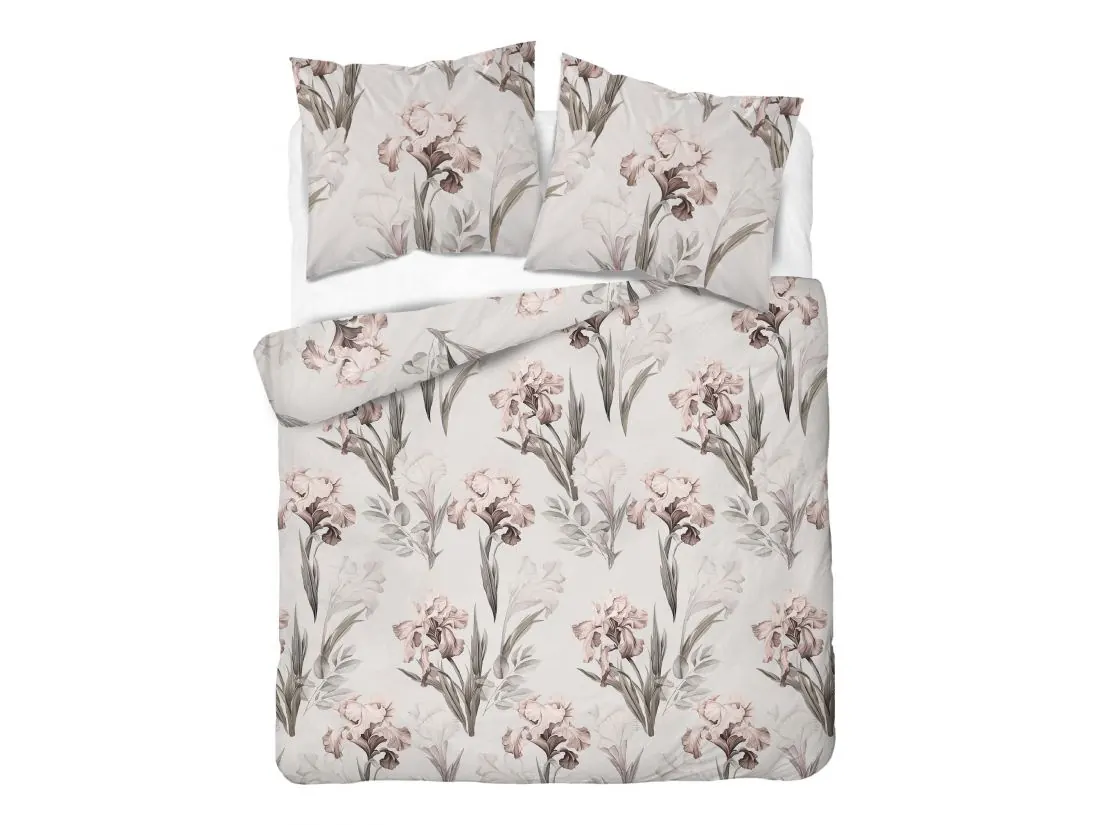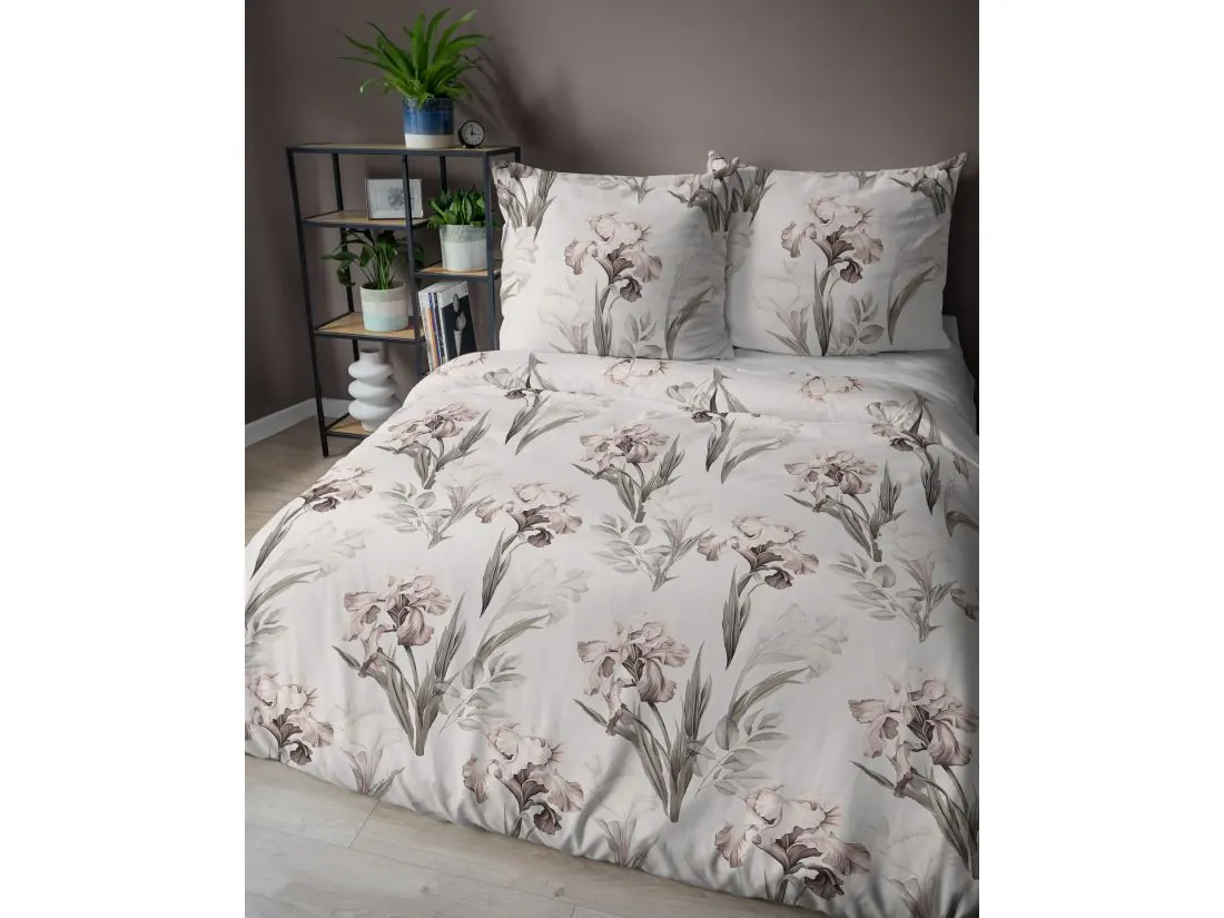 Pościel satynowa 160x200+2/70x80 irysy na jasno beżowym tle wz 5089 b detexpol