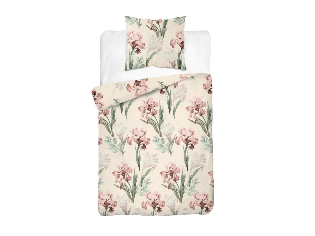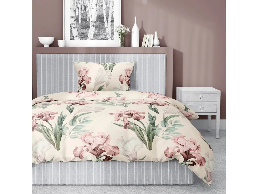 Pościel satynowa 140x200+1/70x80/ irysy na morelowym tle wz 5089 a detexpol