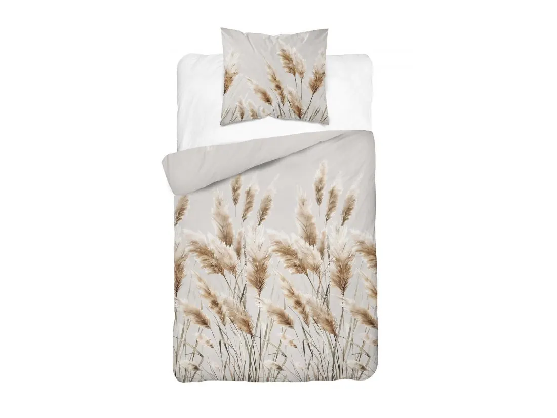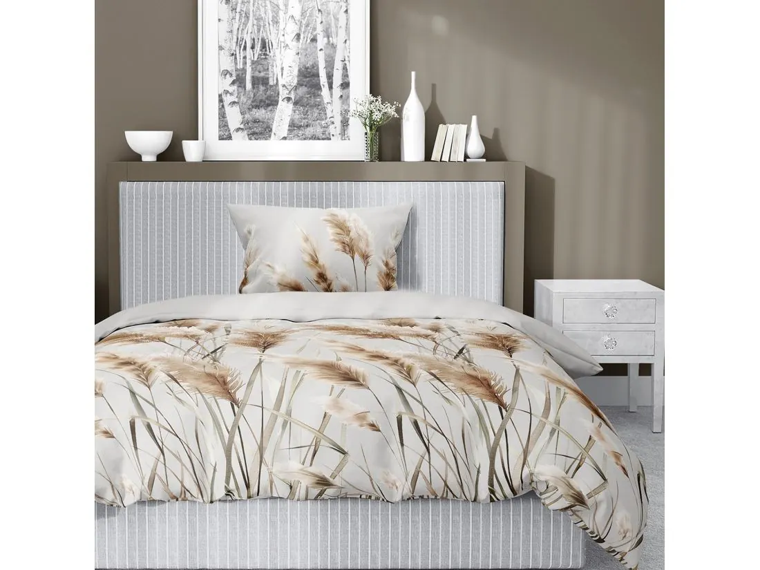 Pościel satynowa 140x200+1/70x80 kortaderia na szarym tle wz. 5329 b detexpol