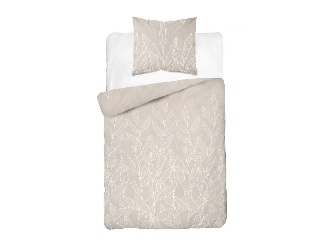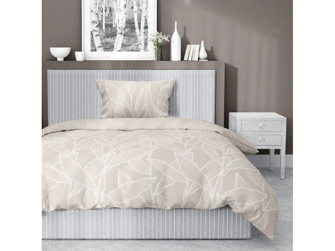 Pościel satynowa 140x200+1/70x80 liście na beżowym tle wz. 5087 a detexpol
