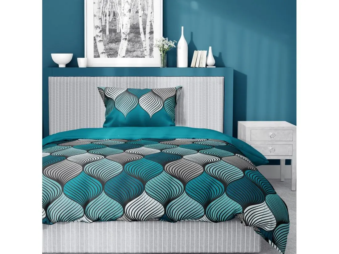 Pościel satynowa 140x200+1/70x80 turkusowa fantazja wz. 5226 a detexpol