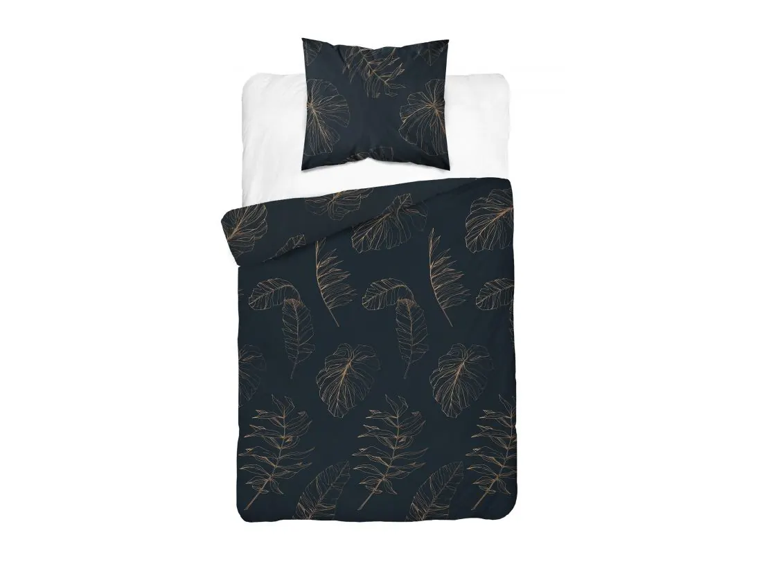 Pościel satynowa 140x200+1/70x80 złote listki na granatowym tle wz. 4826 a detexpol